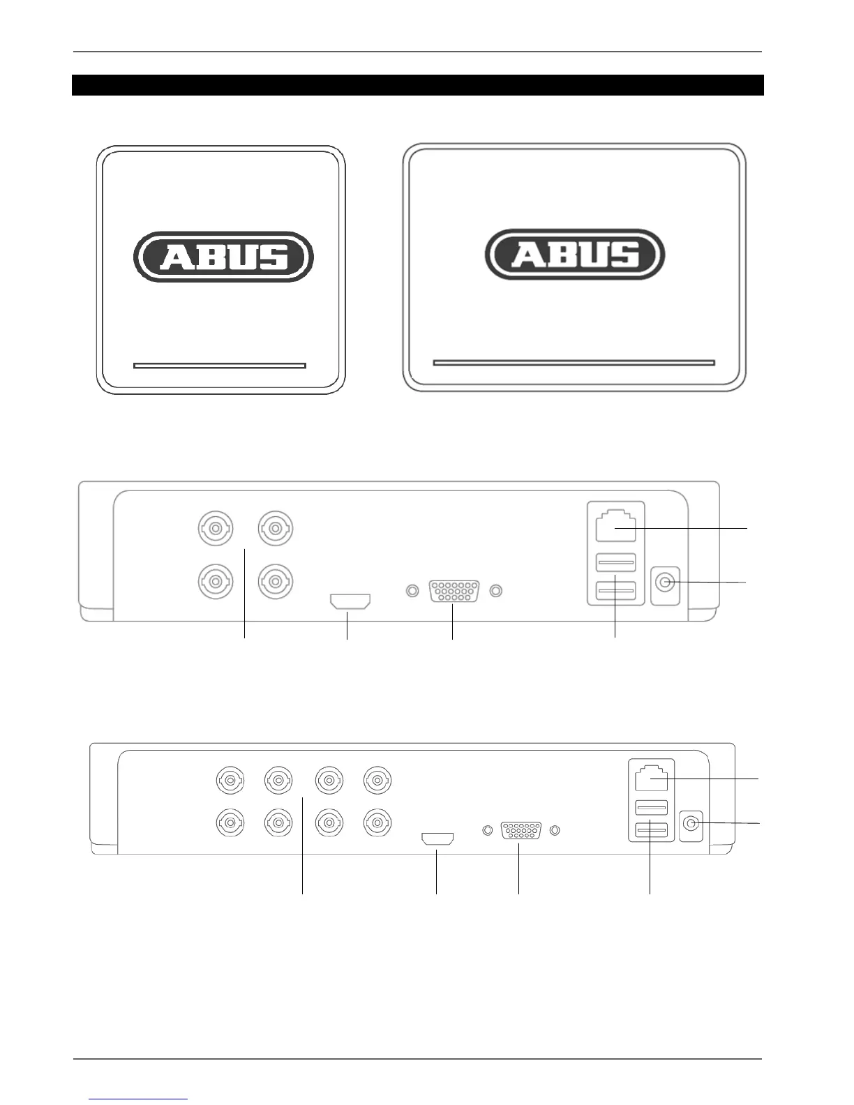 Abus TVVR33004 - Device Overview; Front; Rear of the 4-Channel Recorder; Rear of the 8-Channel Recorder