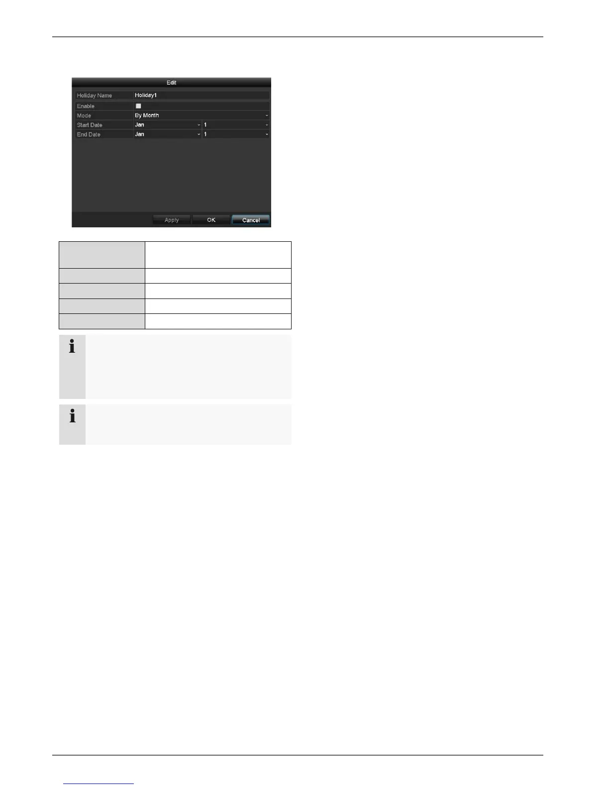 The holiday schedule disables all week time