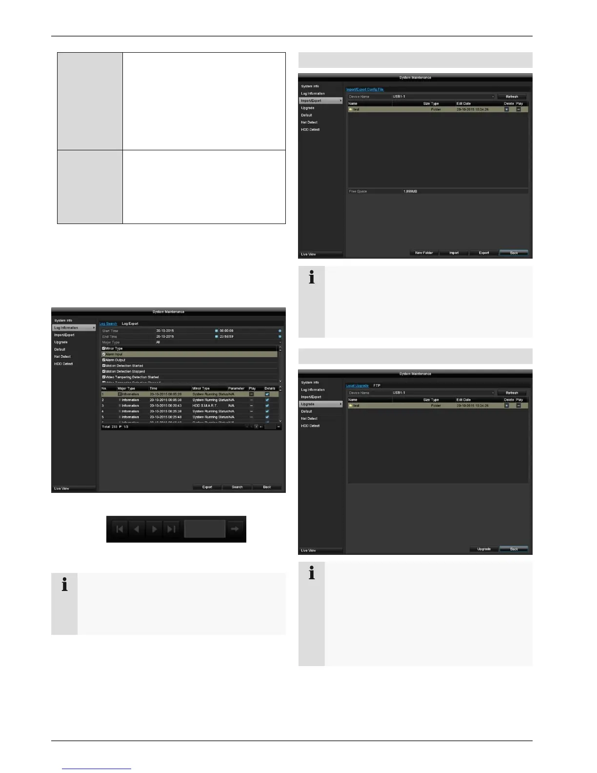 Click on Export to save the log file on a USB