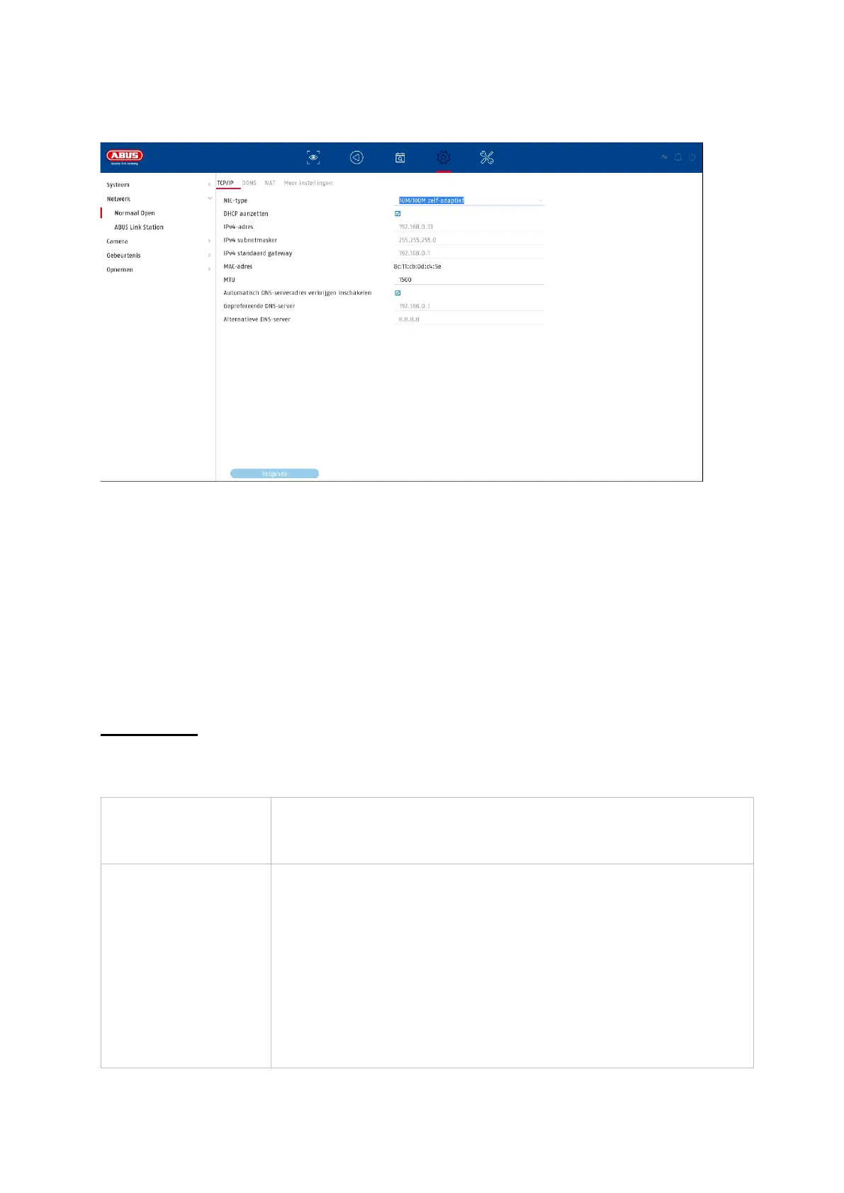 De volledige netwerkconfiguratie van de recorder wordt uitgevoerd in het menu