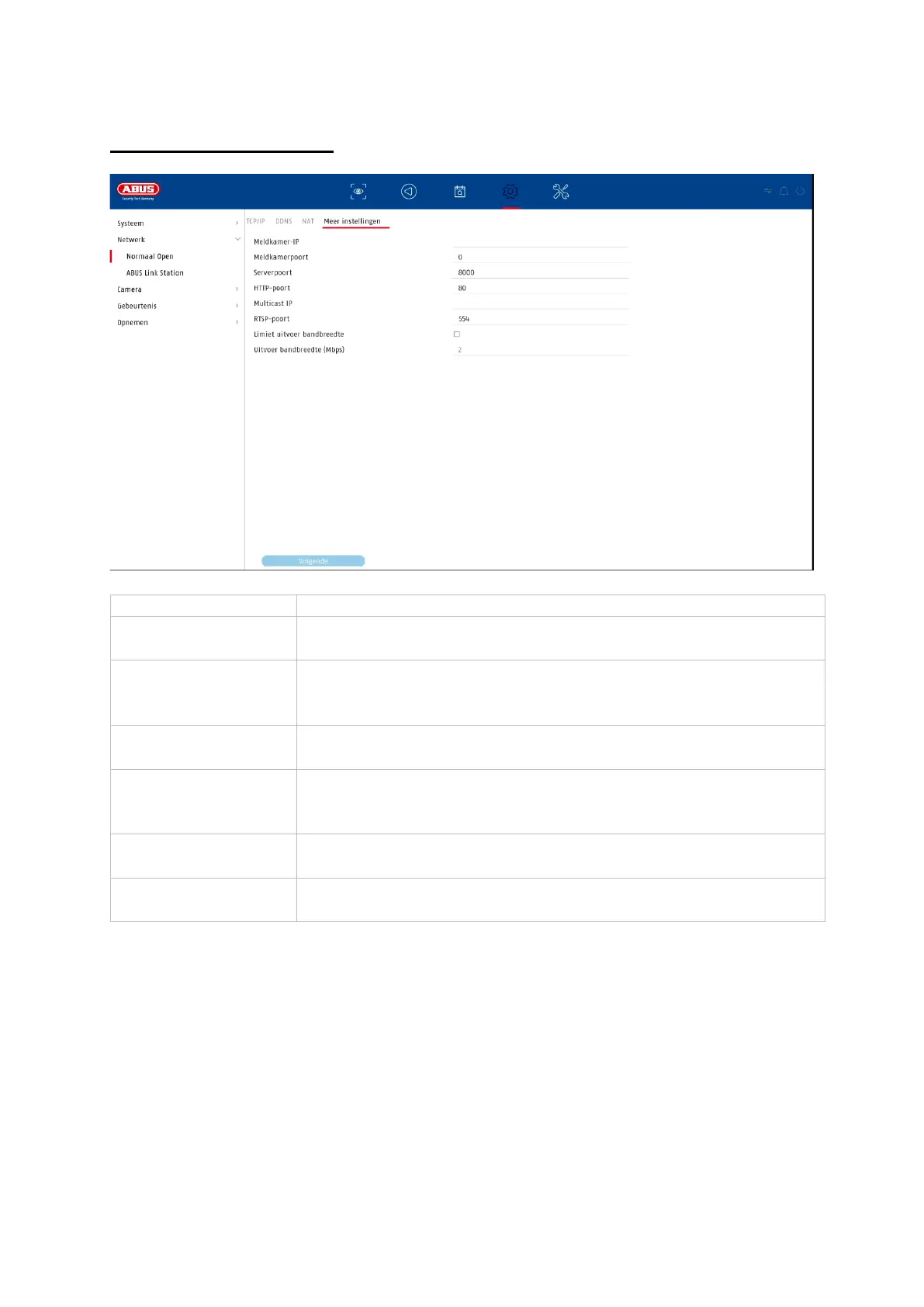 Poort voor datacommunicatie naar ABUS CMS en iDVR App /