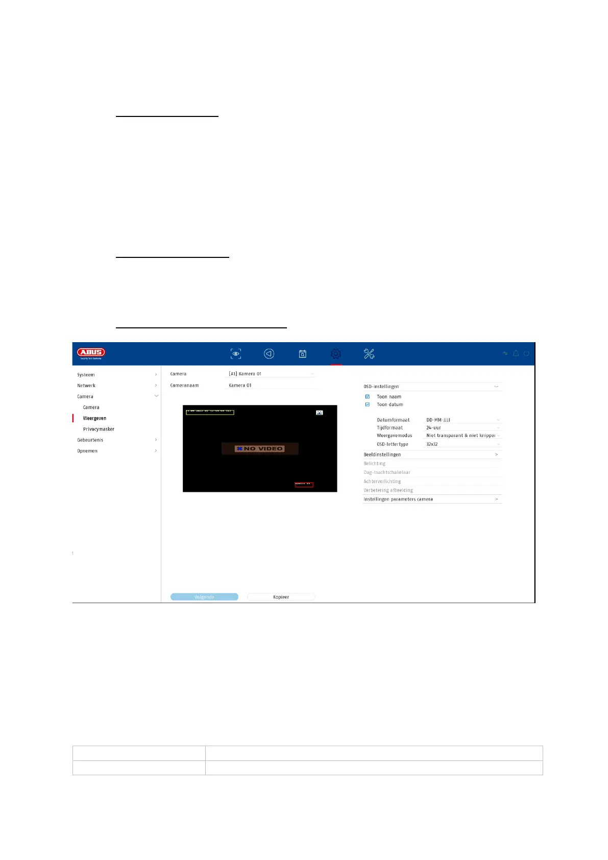 weergave van de camera. De positionering van de cameranaam en datum & tijd kan