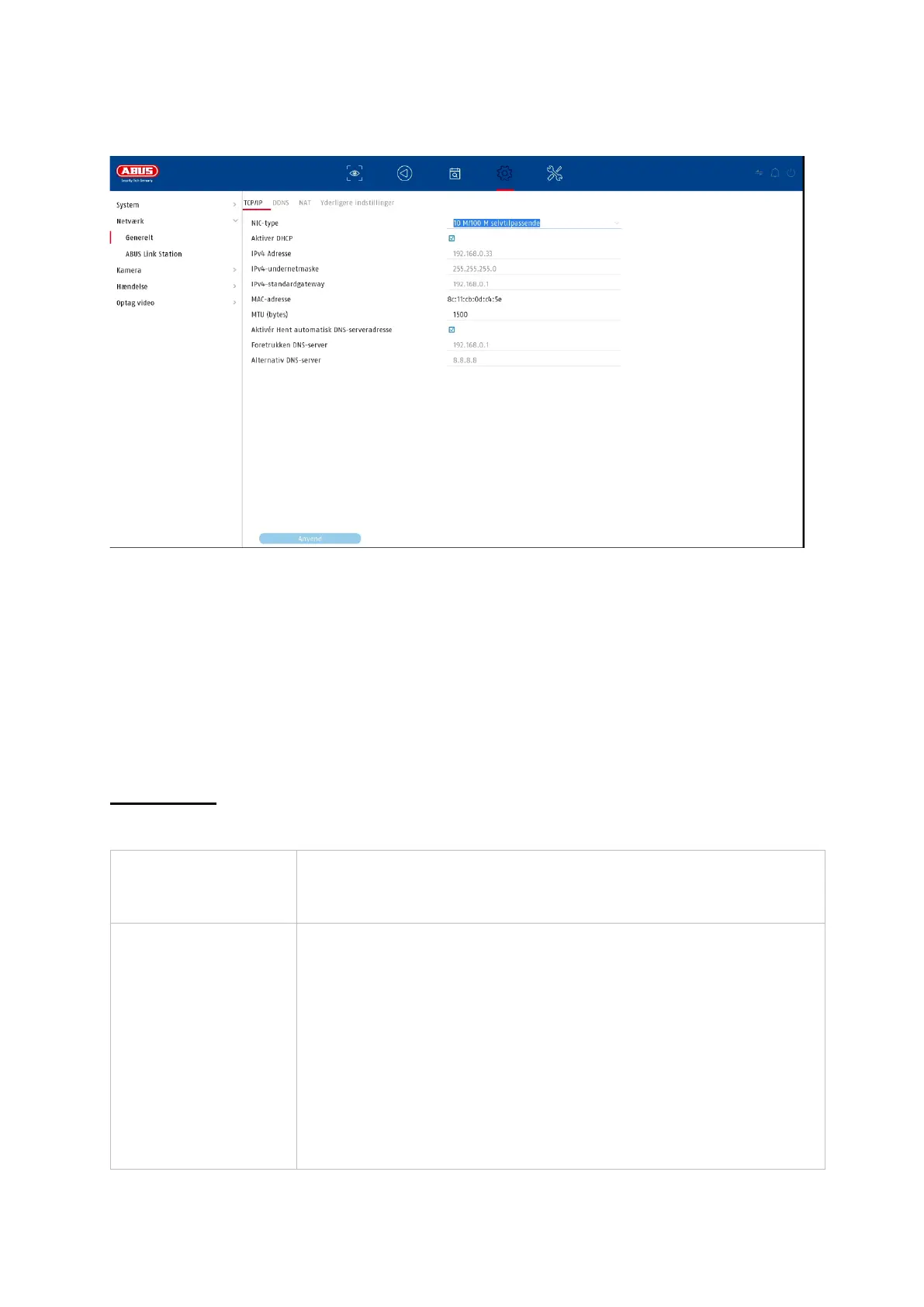 DHCP aktiv: Følgende indtastningsfelter er inaktive, da
