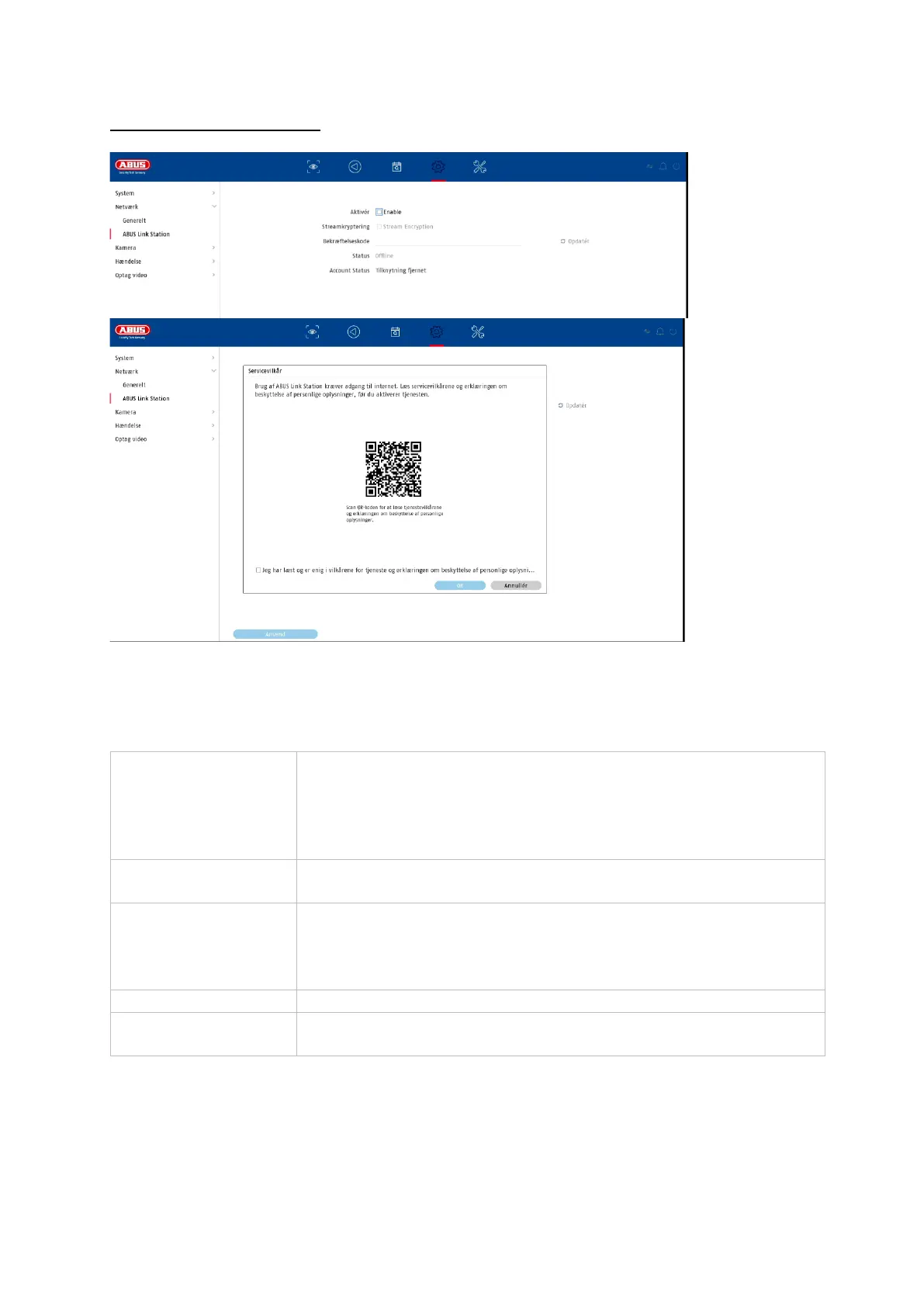 Viser, om optageren er tilsluttet ABUS Link Station-tjenesten.
