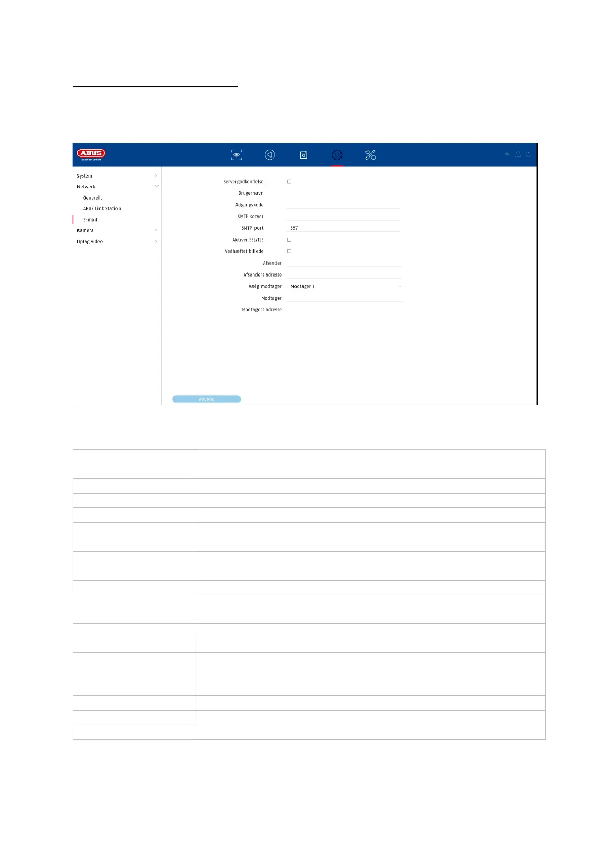 I tilfælde af en alarm kan enheden sende en meddelelse via e-mail. Indtast e-mail-