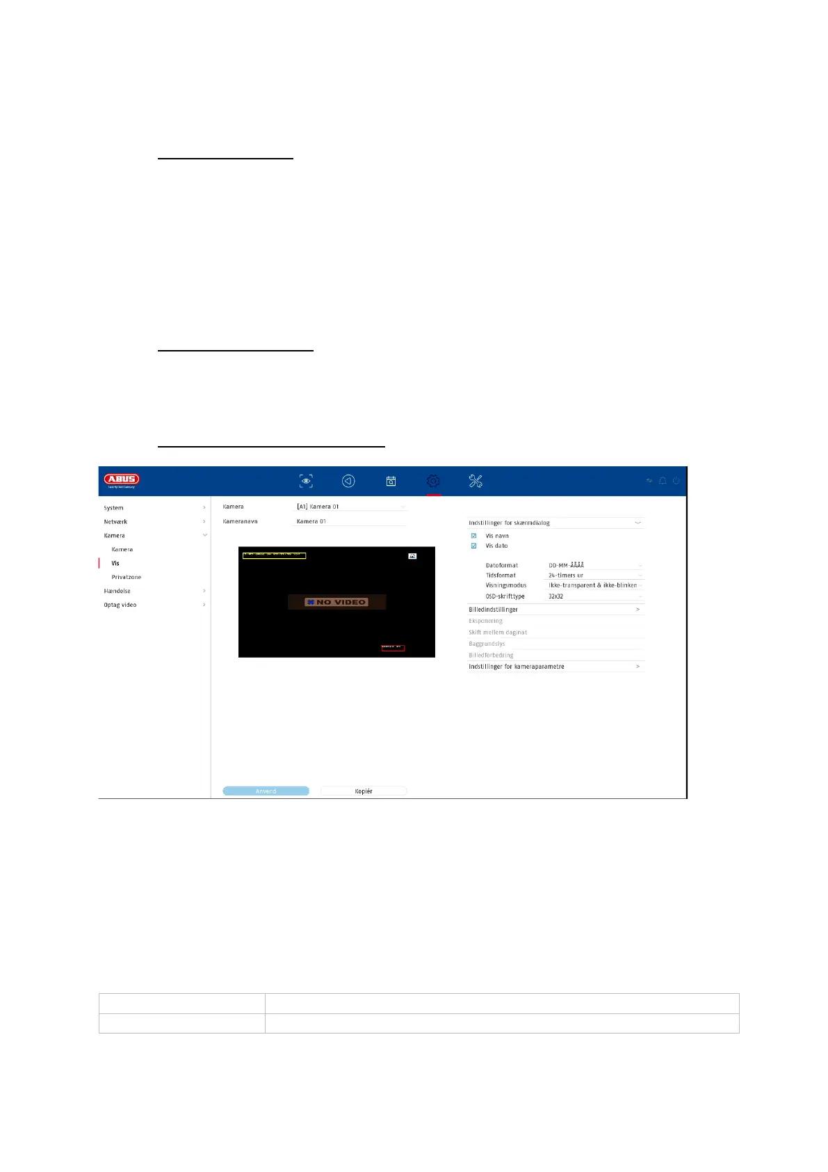Her har du mulighed for at foretage individuelle indstillinger for hvert kamera for at