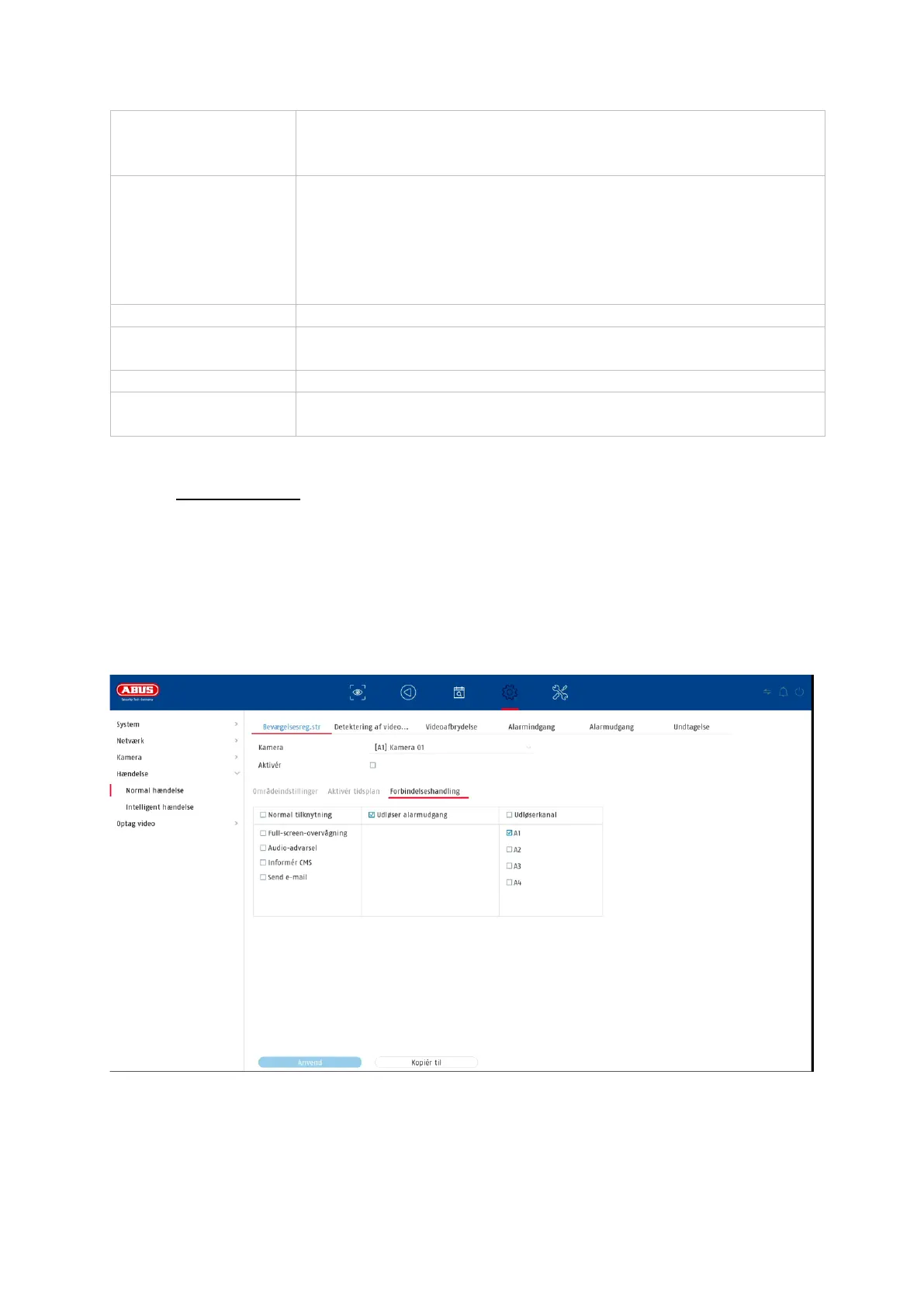 I menuen "Event" definerer du, hvilke reaktioner der skal udløses i tilfælde af en
