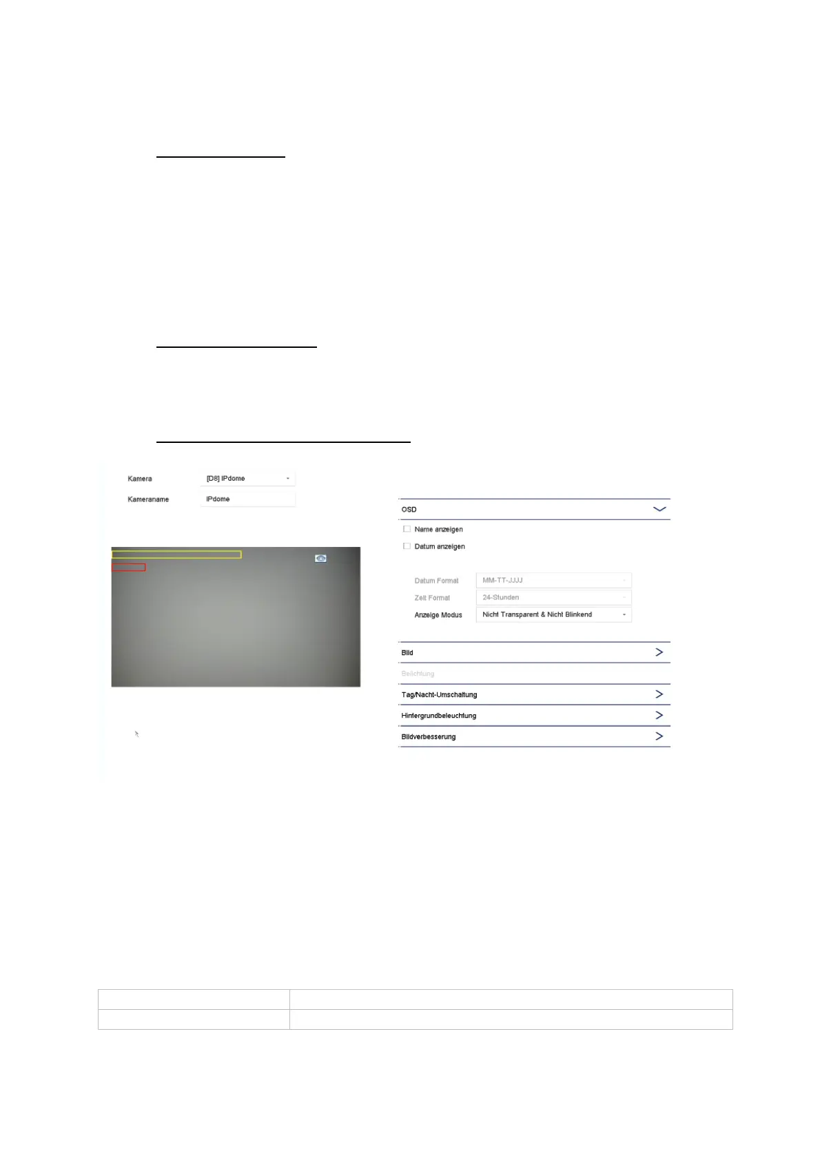 Kamera vorzunehmen. Die Positionierung von Kameraname und Datum&Uhrzeit