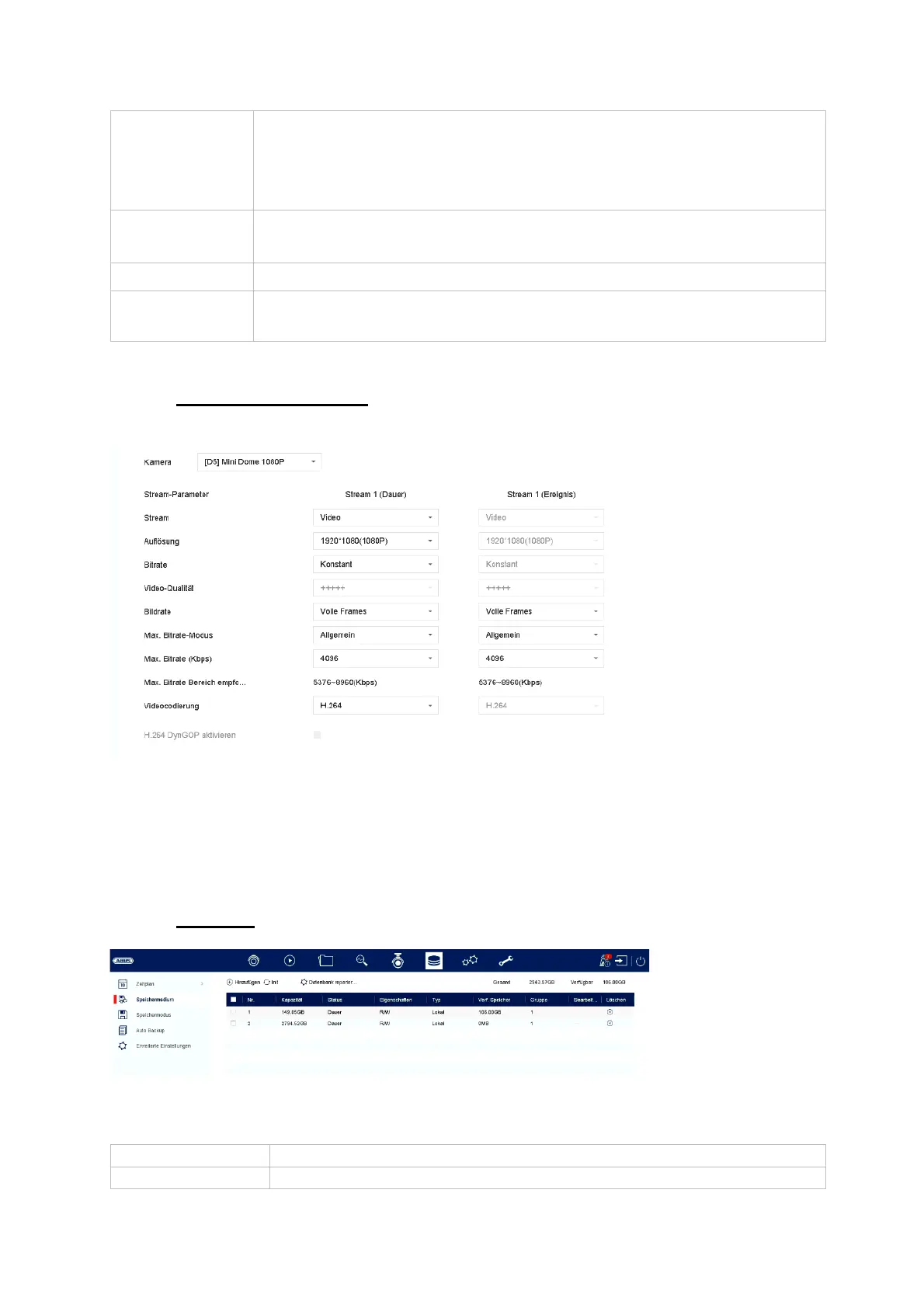 Hier können Sie die Video-Parameter für den Stream 1 und 2 anpassen.