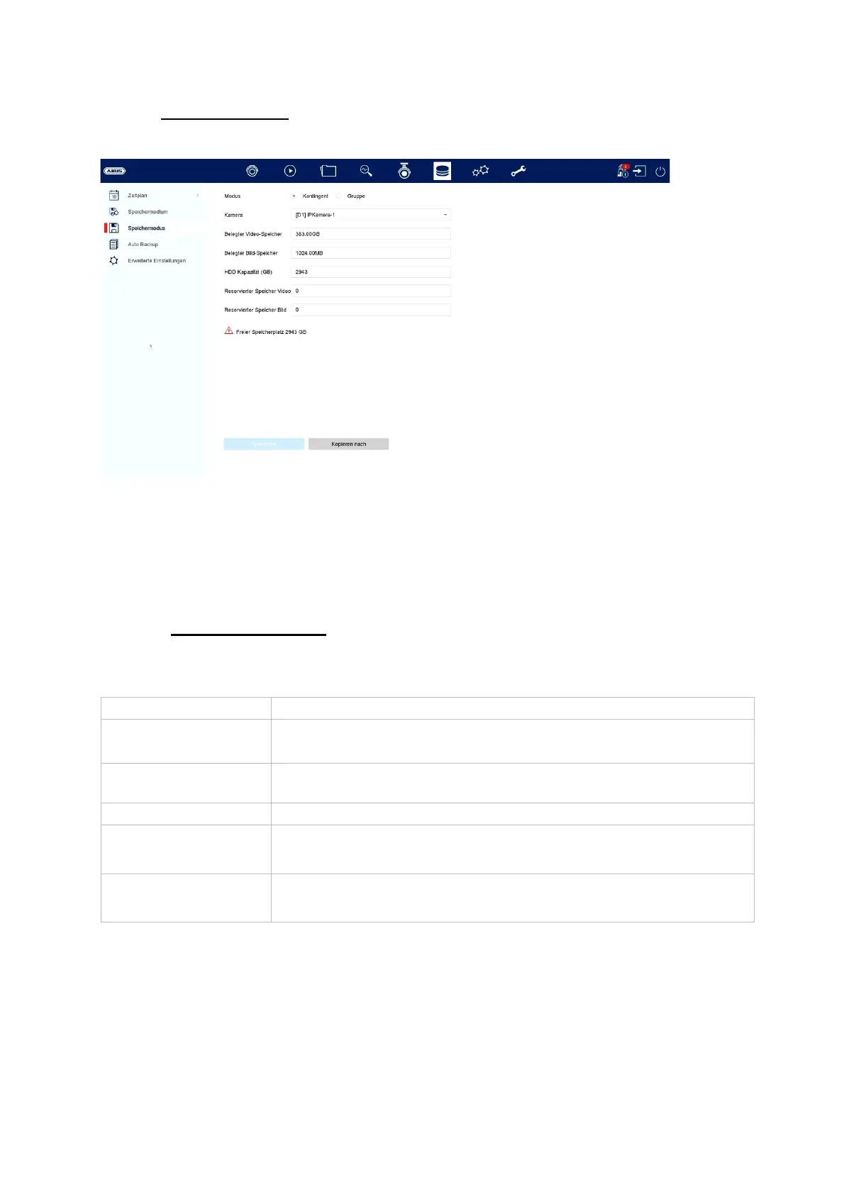 In diesem Menü stellen Sie den Speichermodus des Rekorders ein. Es stehen zwei