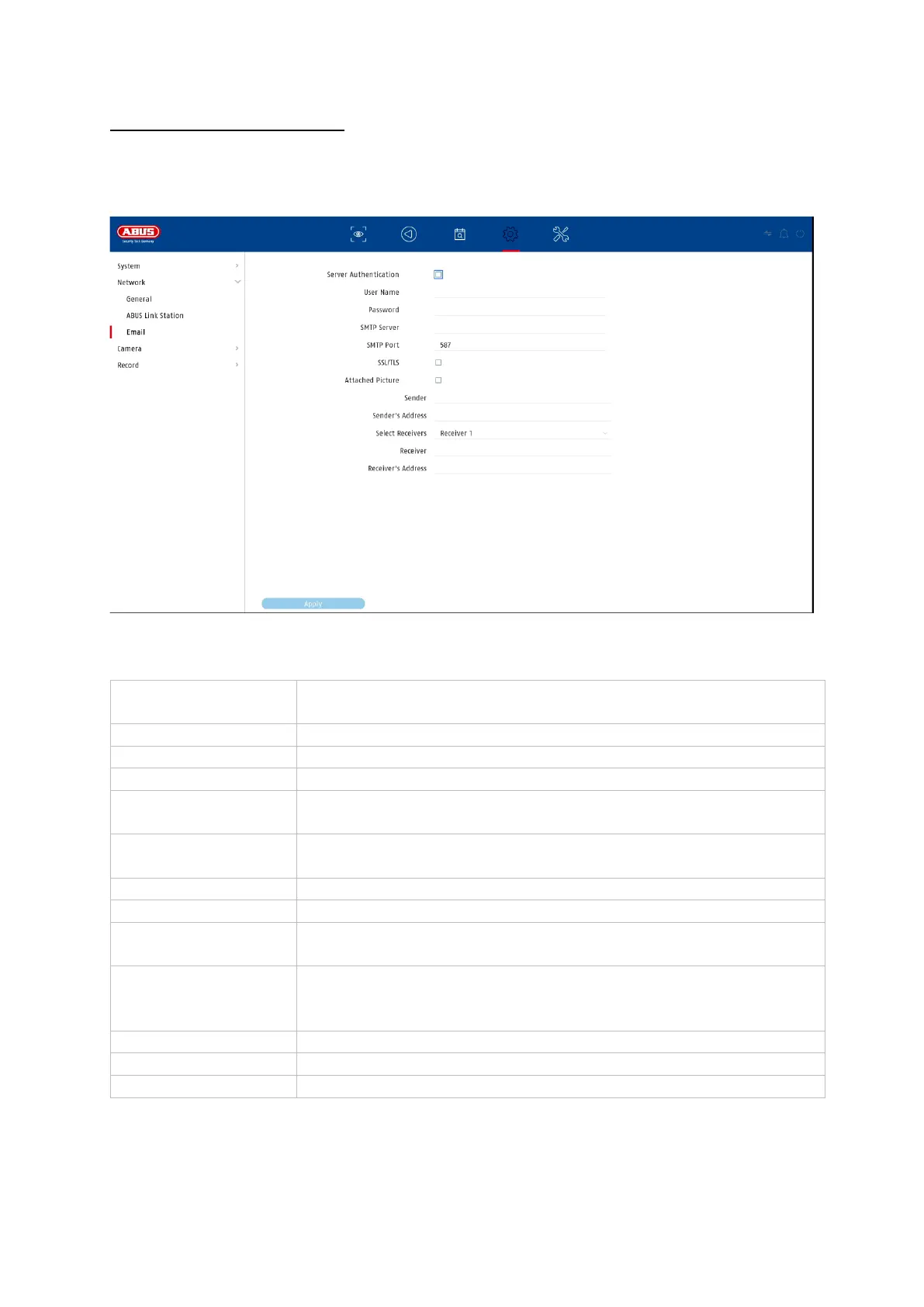 In the event of an alarm, the unit can send a message by email. Enter the email