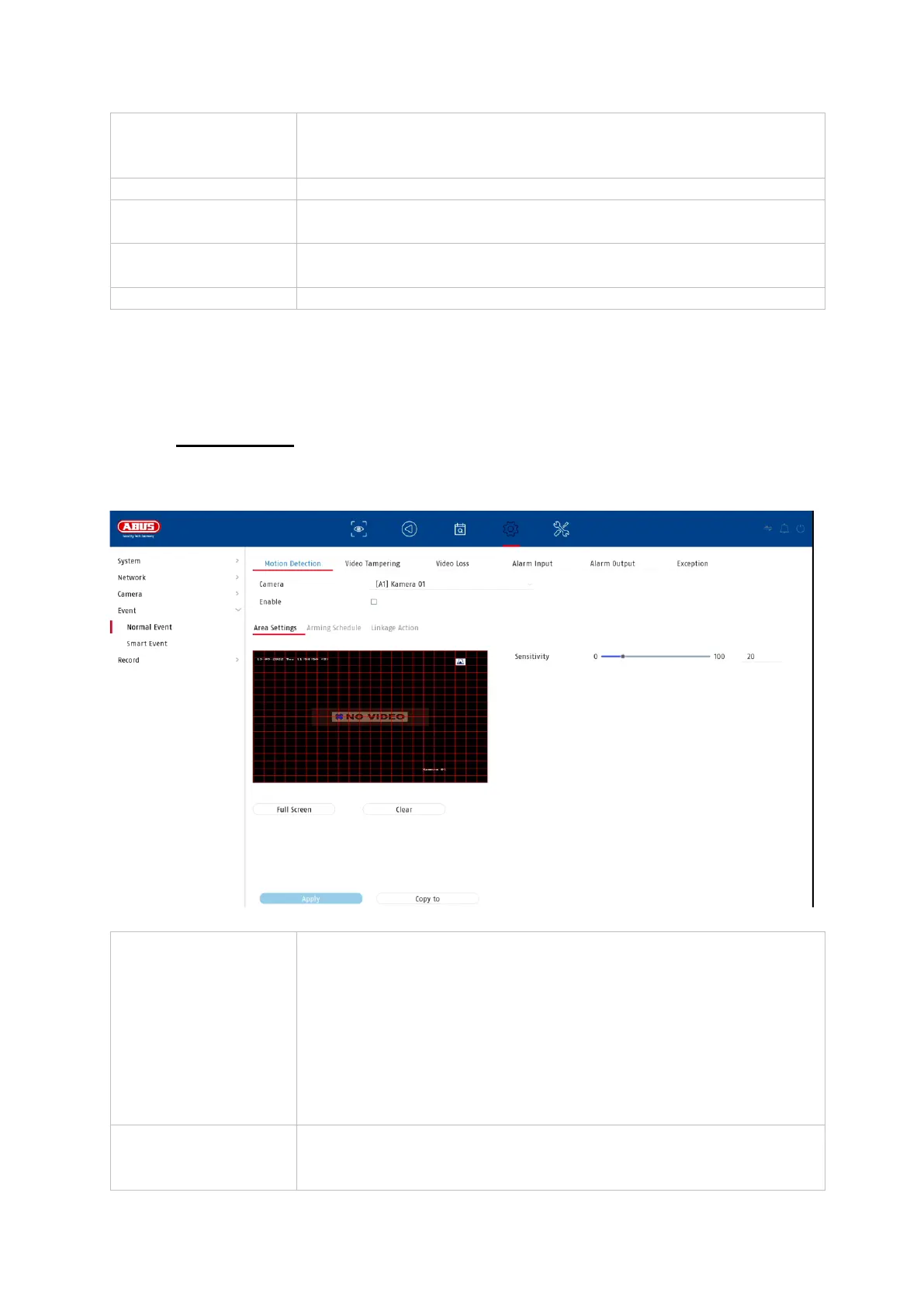 Note: The displayed settings for motion detection are basic