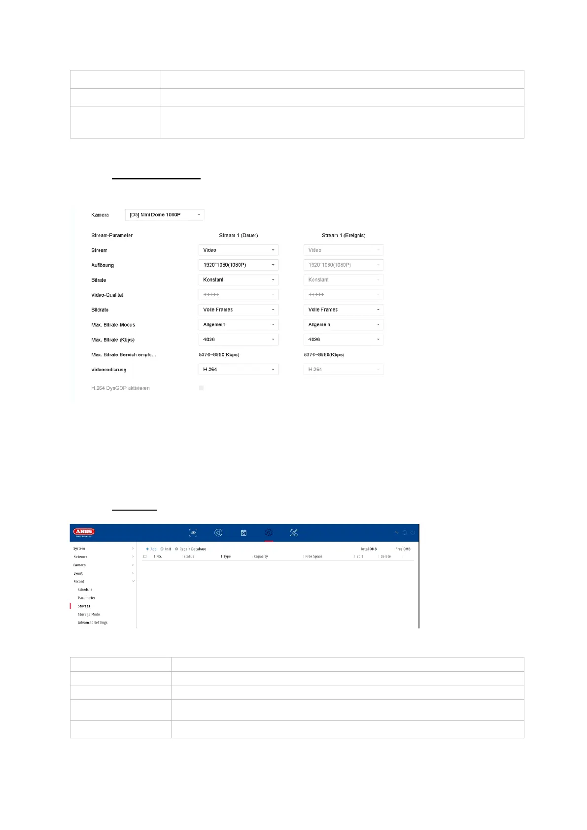 Here you can adjust the video parameters for stream 1 and 2.
