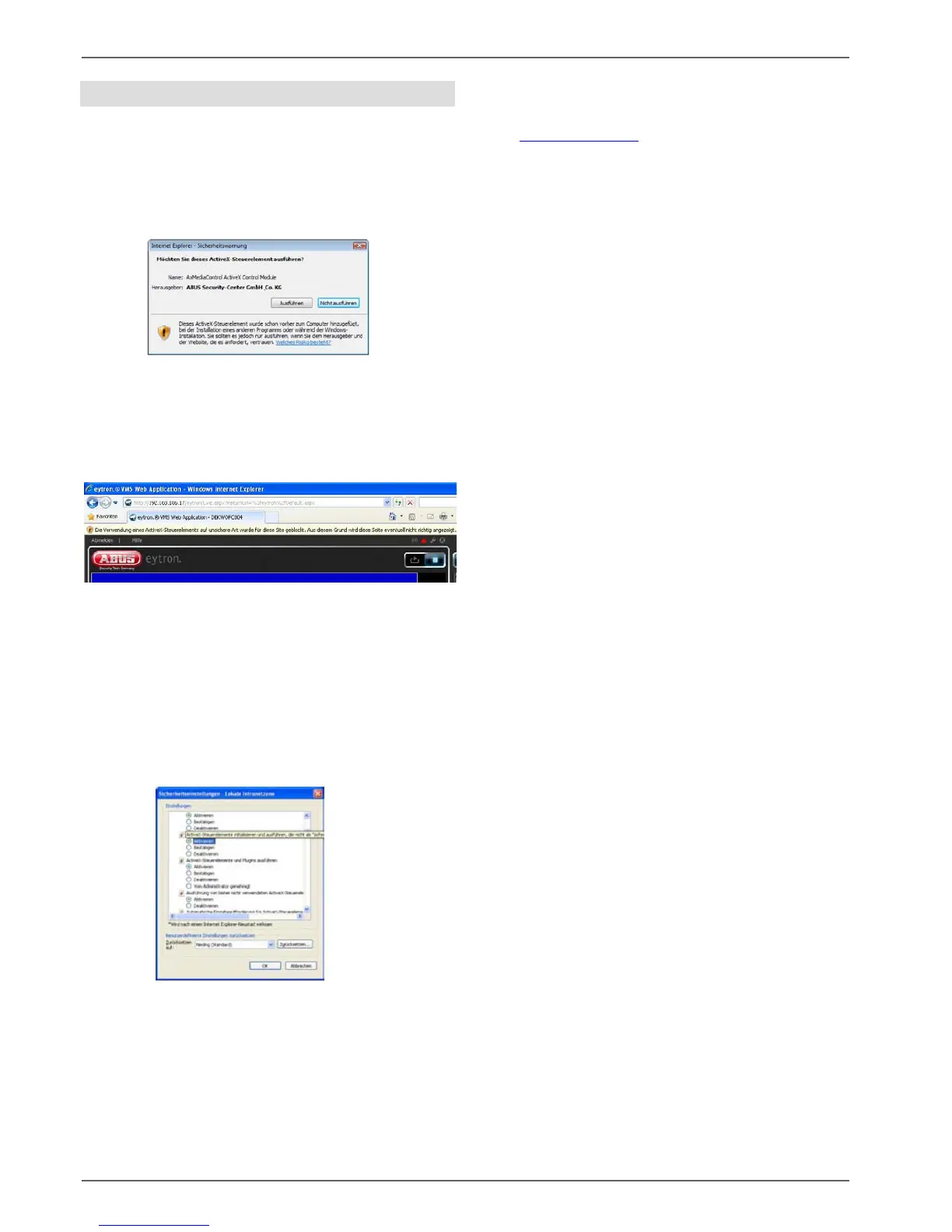 Then the security settings must be modified in the Inter-