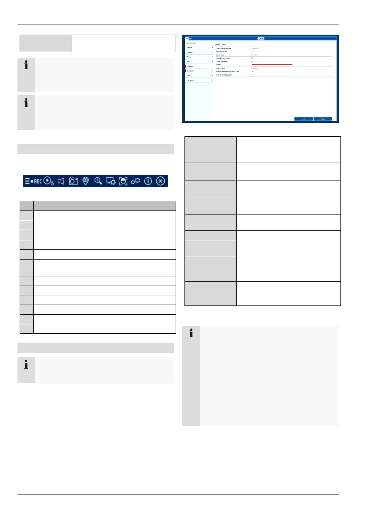 The following settings are available for the live