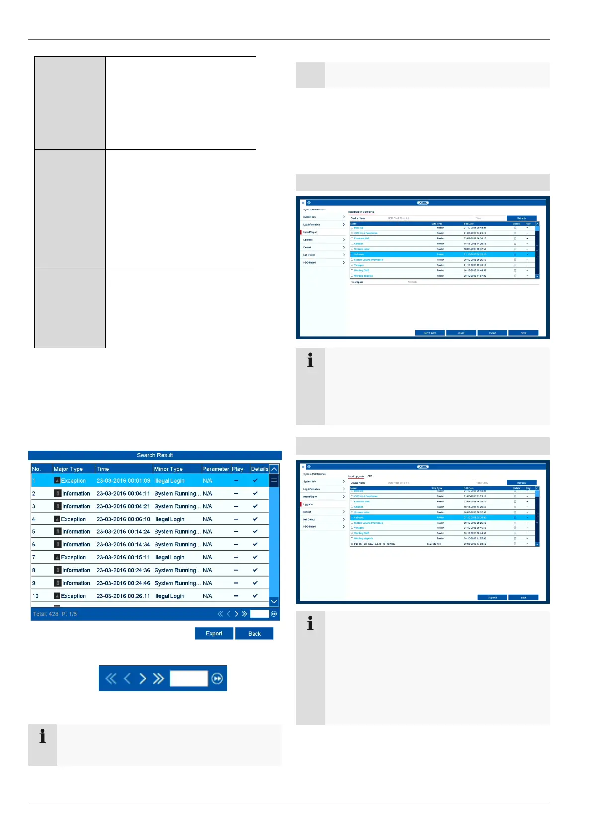 Click on Export to save the log file on a USB me-