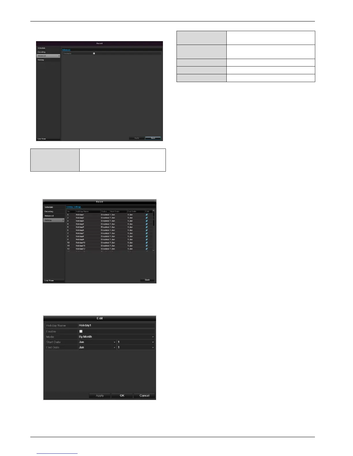 Abus TVVR36000 - Advanced Settings; Holidays