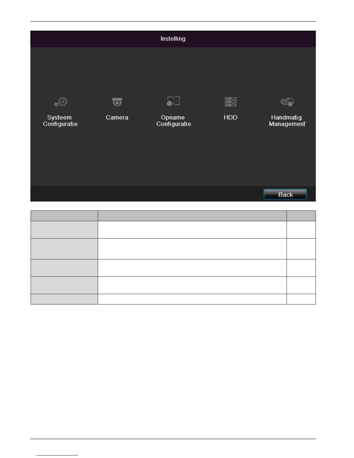 Beheer van alle instellingen (algemeen, netwerk, live kijken, waarschuwing,
