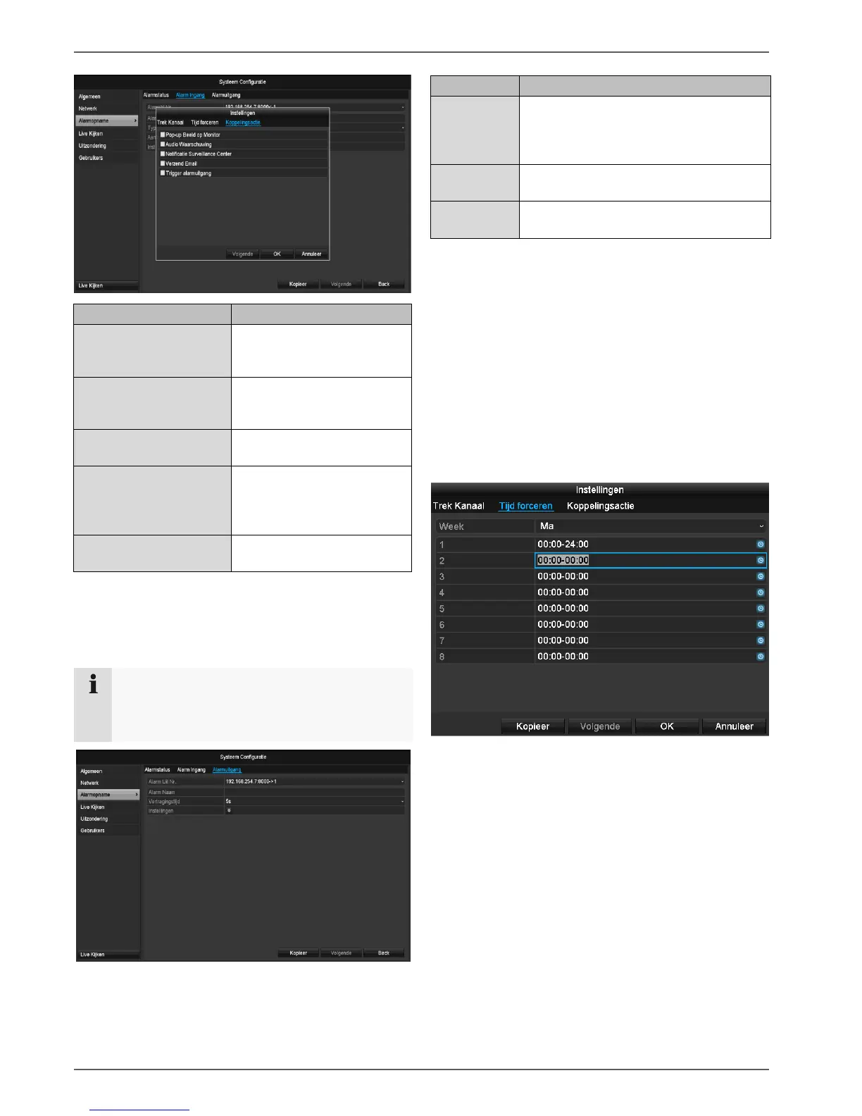 Leg het gedrag van de recorder voor geval van alarm