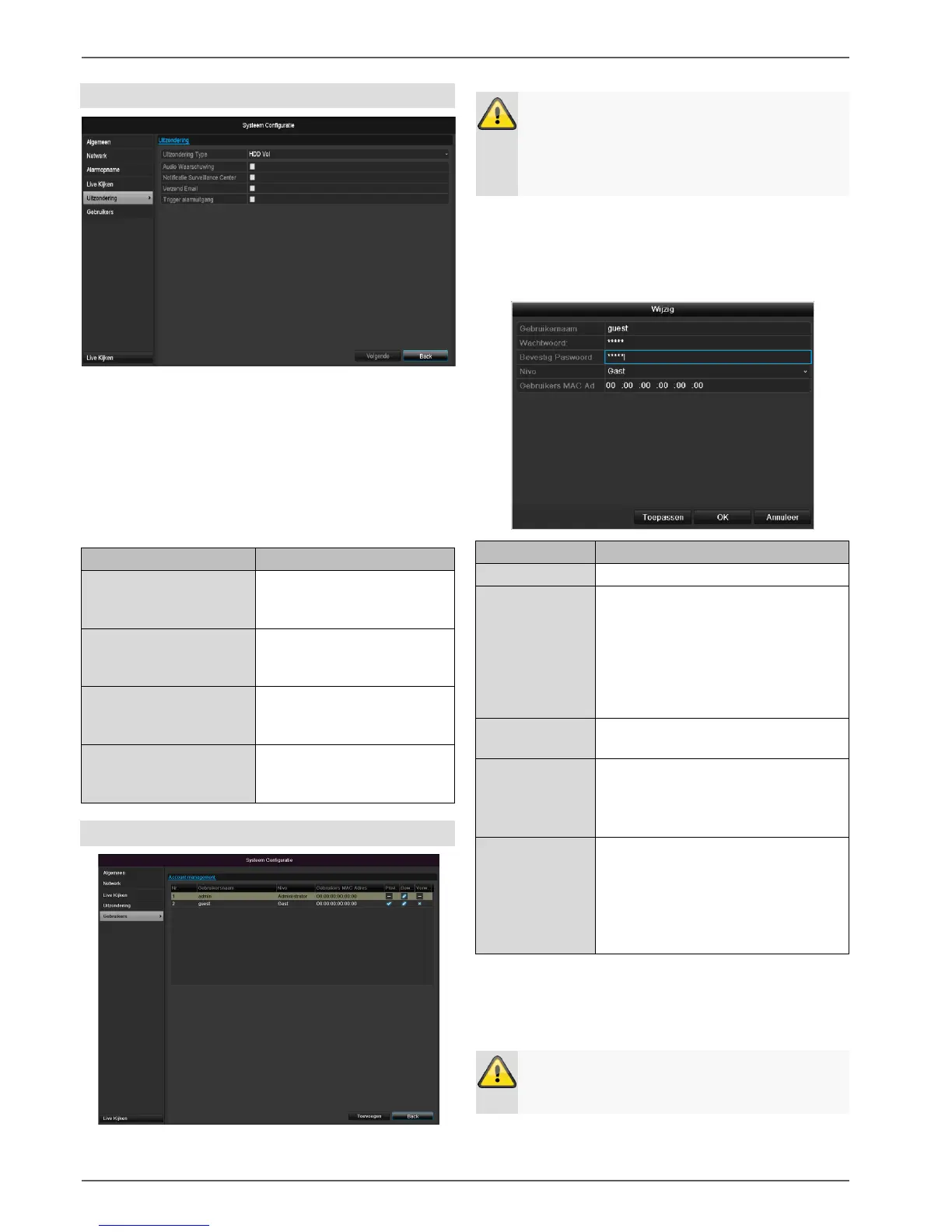 Voor de volgende fouttypes kunt u een waarschuwing ac-