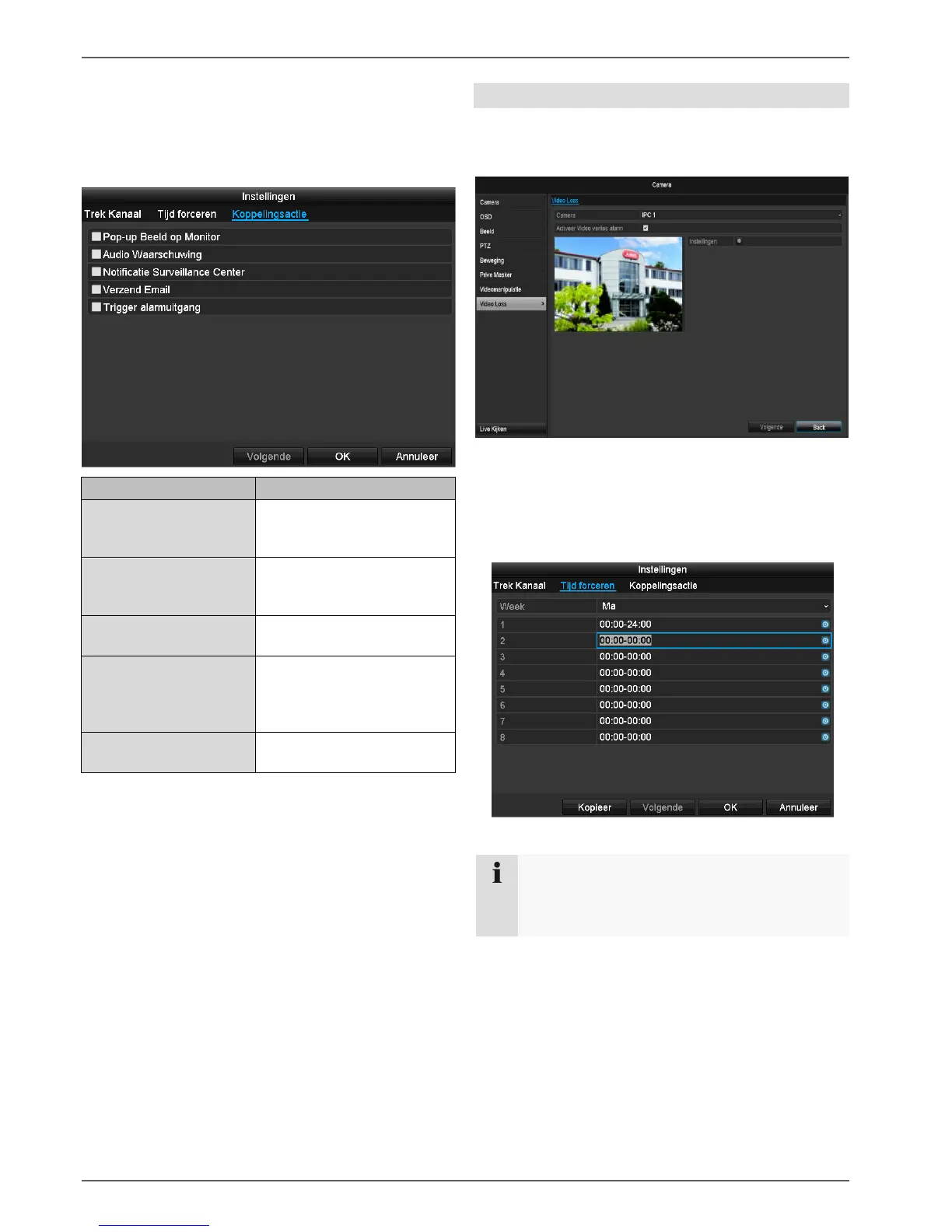 Plaats het vinkje bij Alarm voor „Video Loss” activeren.