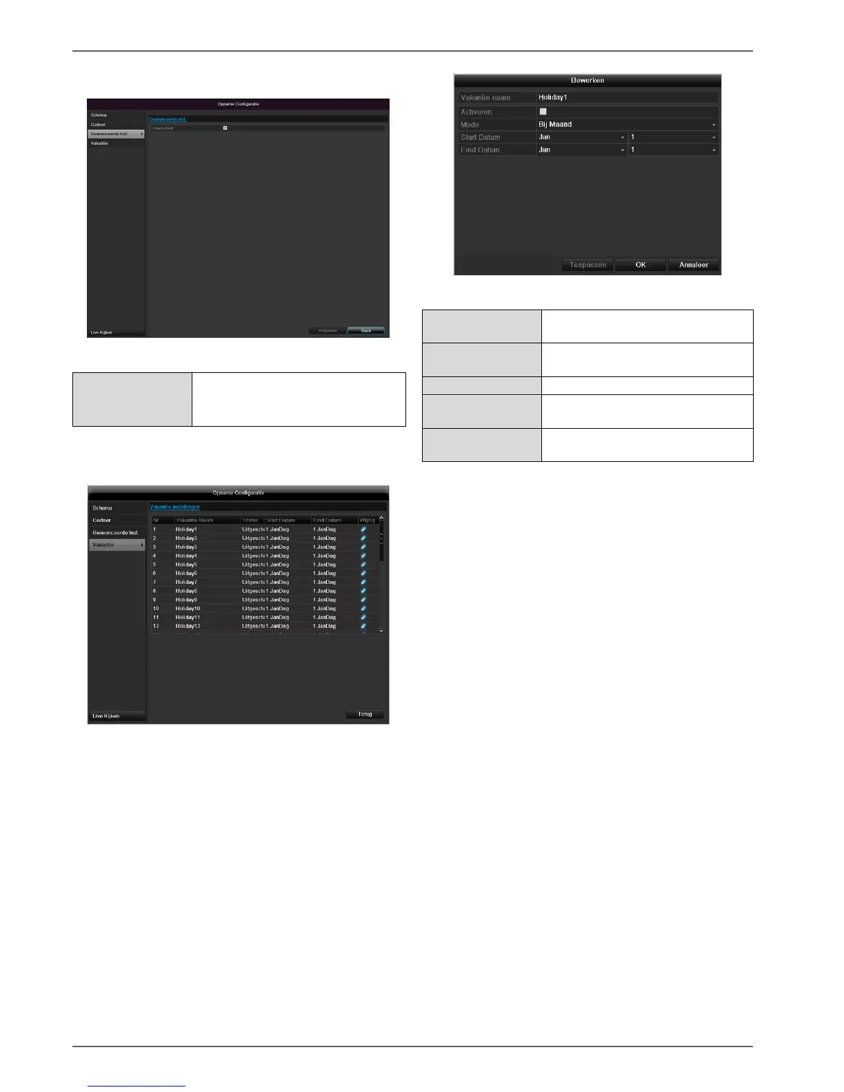 instellingen voor vakantie of feestdagen worden uitgevo-