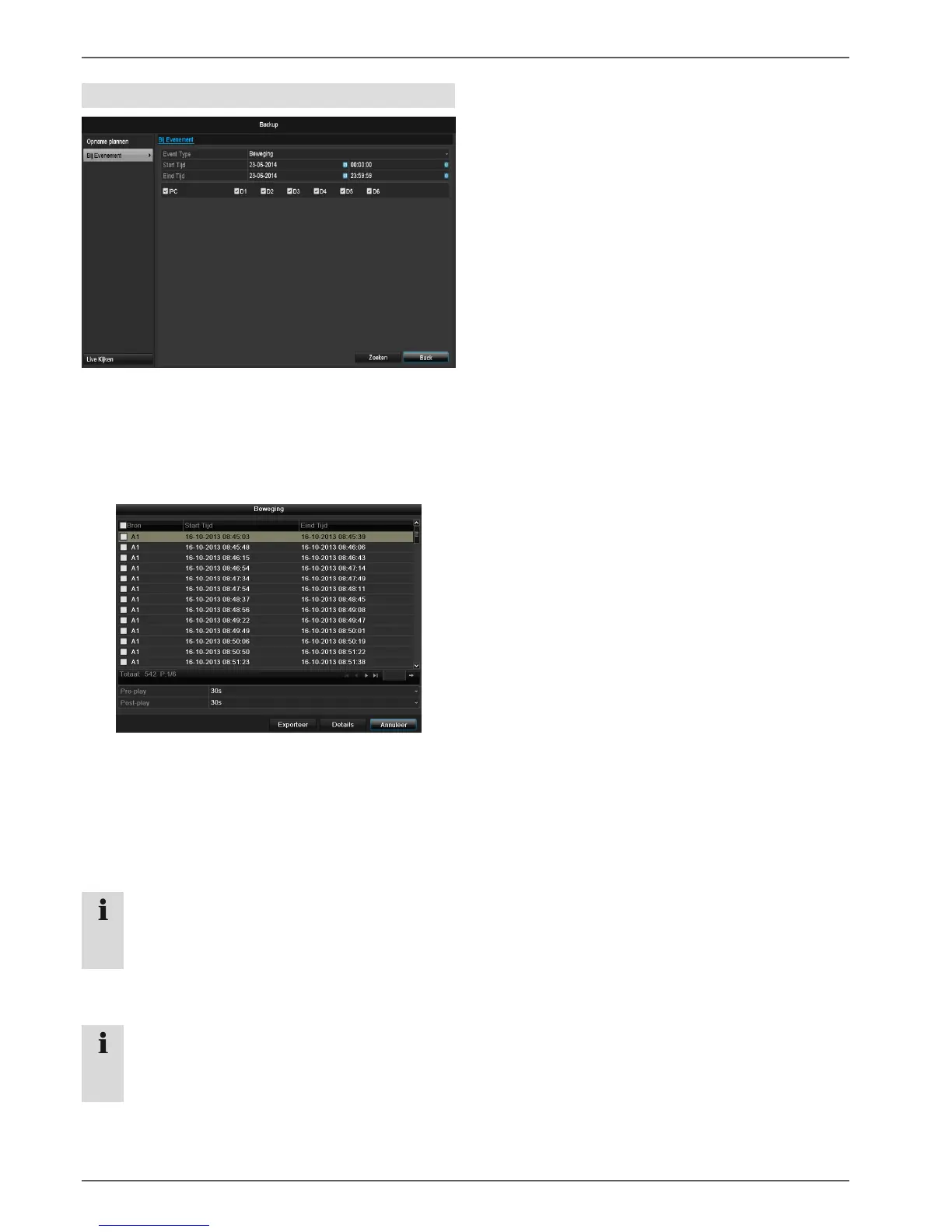 Leg de opnameperiode vast waarin u wilt zoeken met