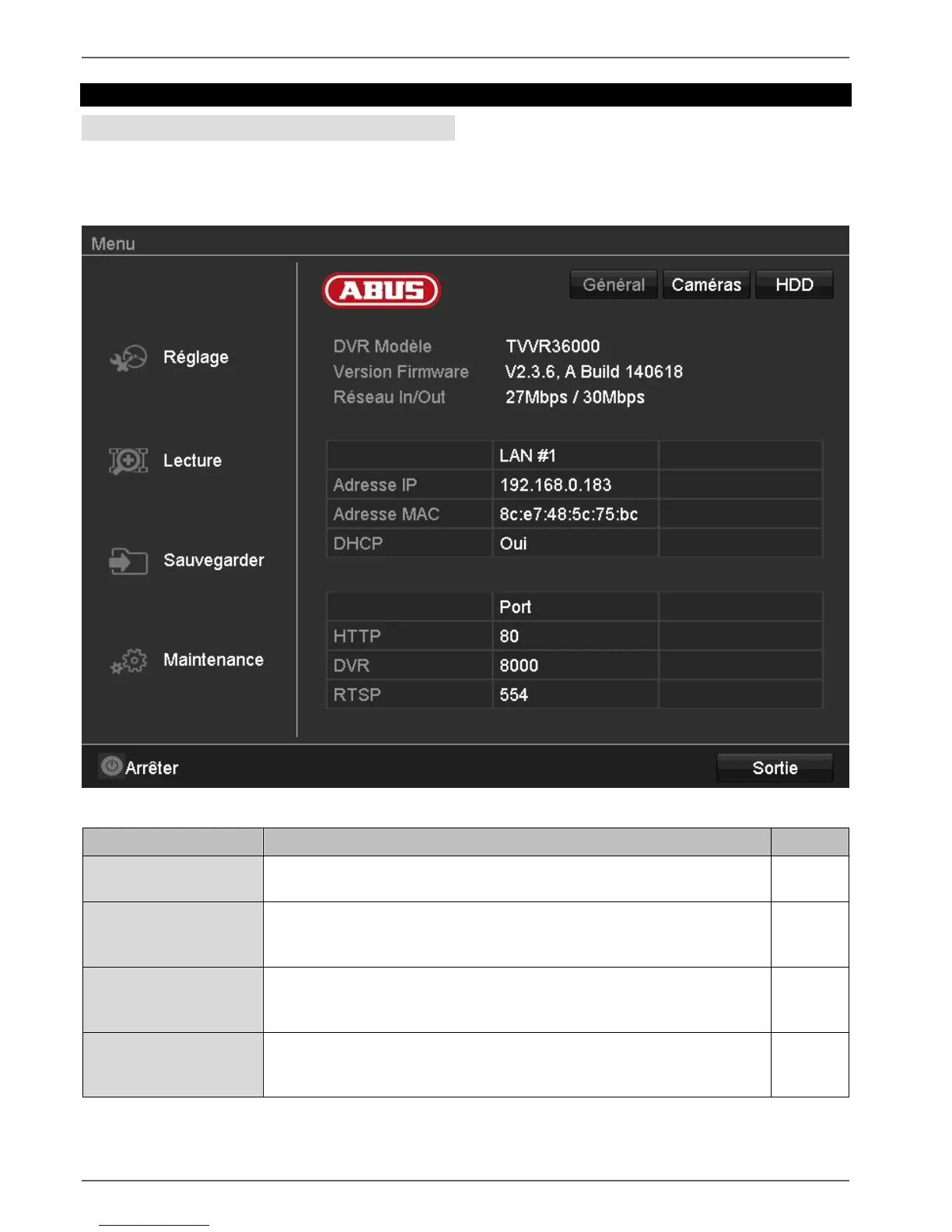 nus destinés au paramétrage et à l’utilisation de l’appareil