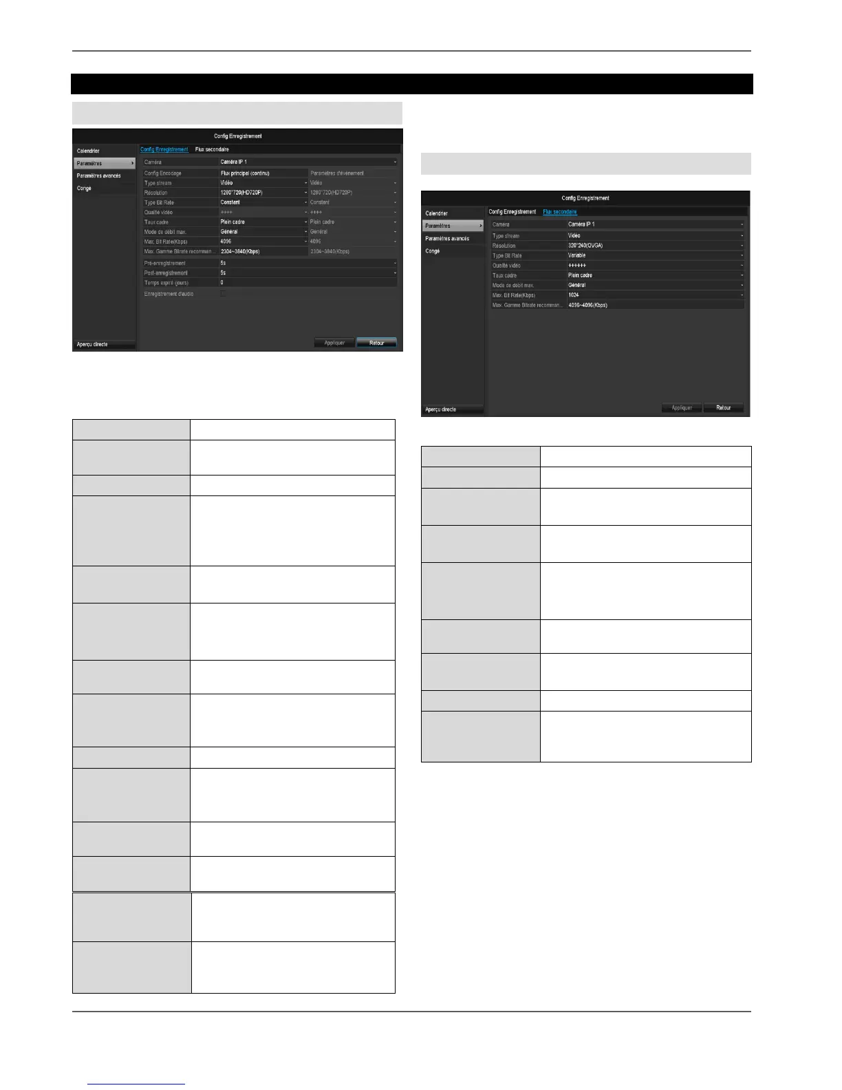 Les paramètres suivants peuvent être configurés :