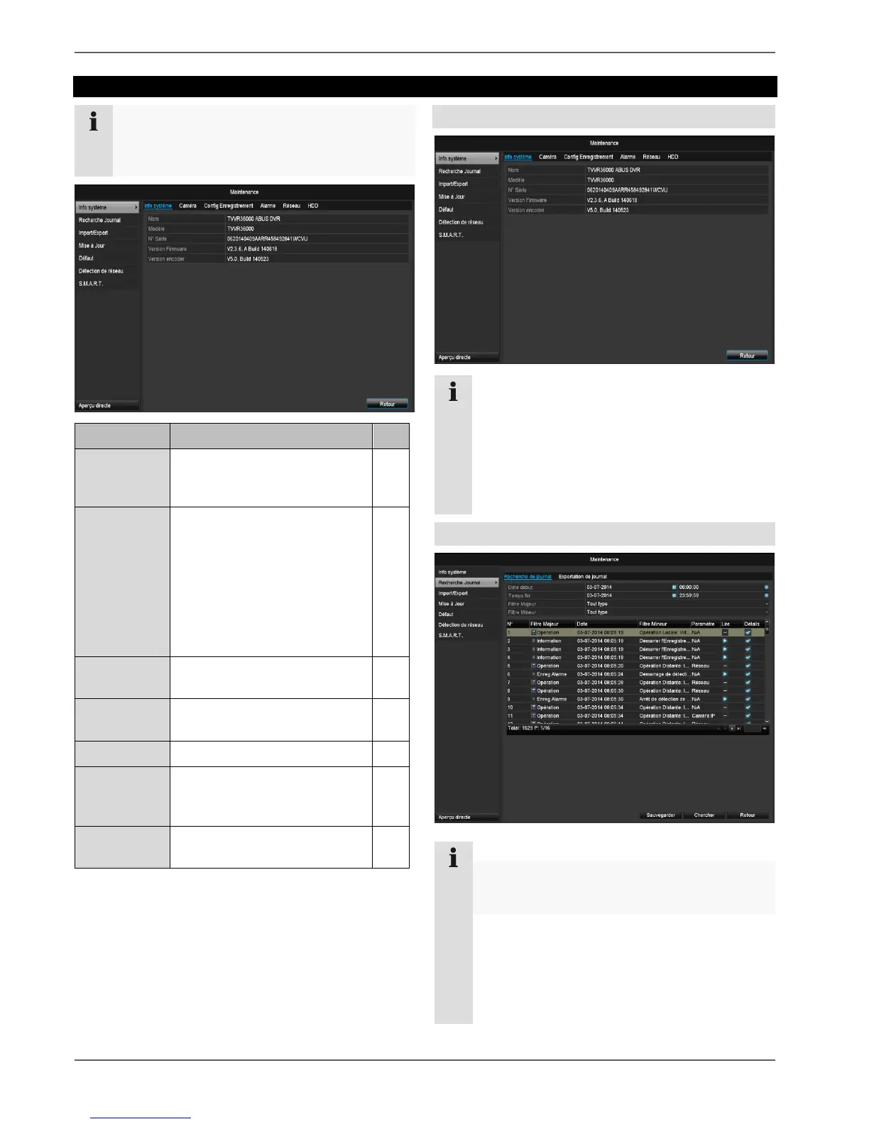 Ce menu est destiné à la gestion de l’appareil et