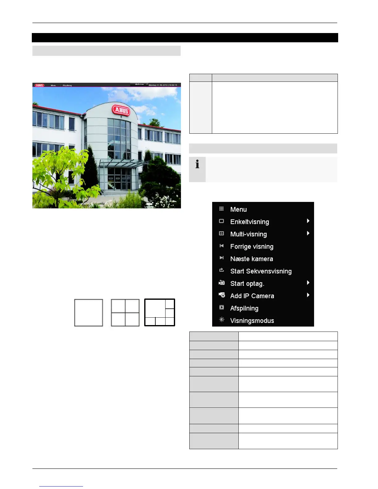 På hovedskærmen vises signalerne for de tilsluttede ka-