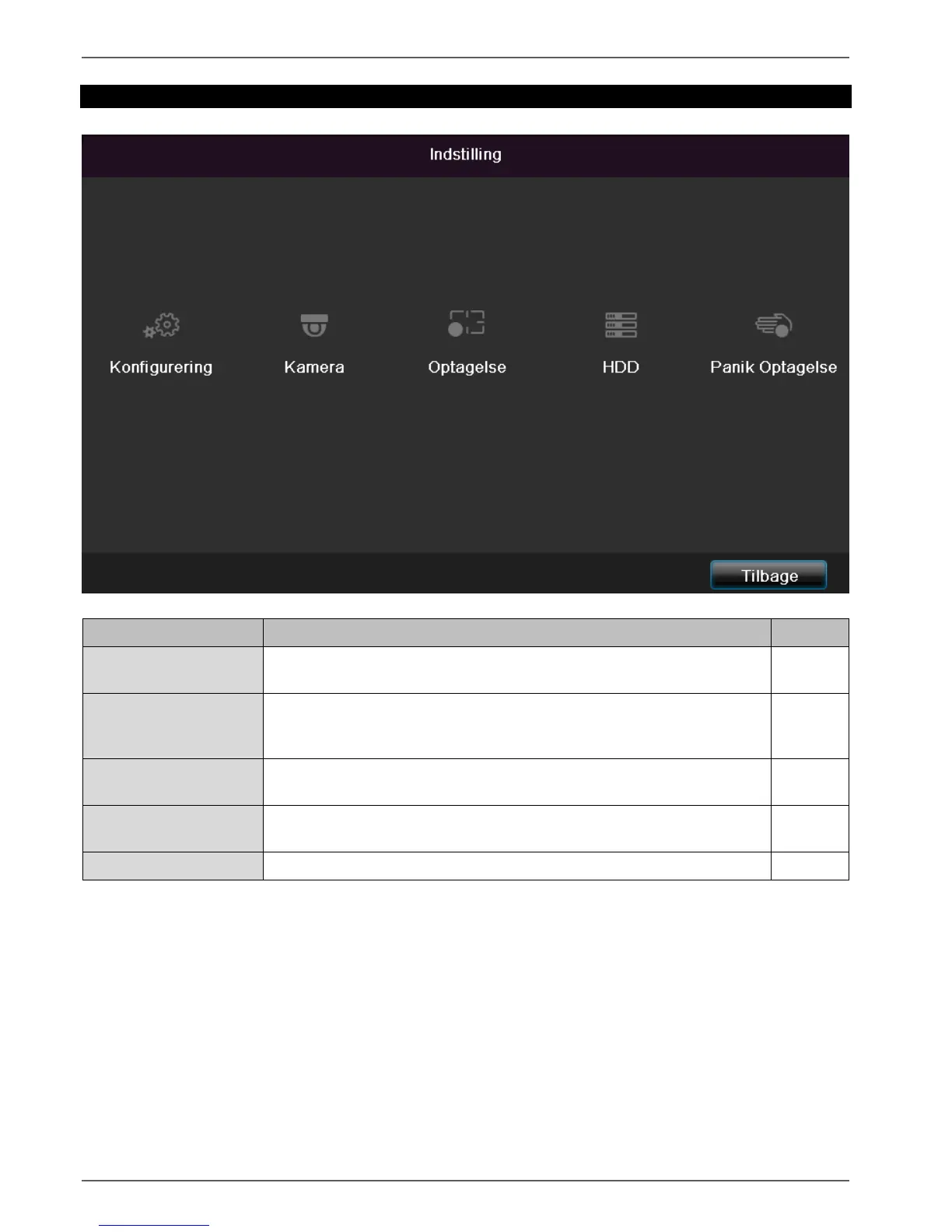 Menu til indstilling af kameraparametre (OSD-konfiguration, billedmodus, ,