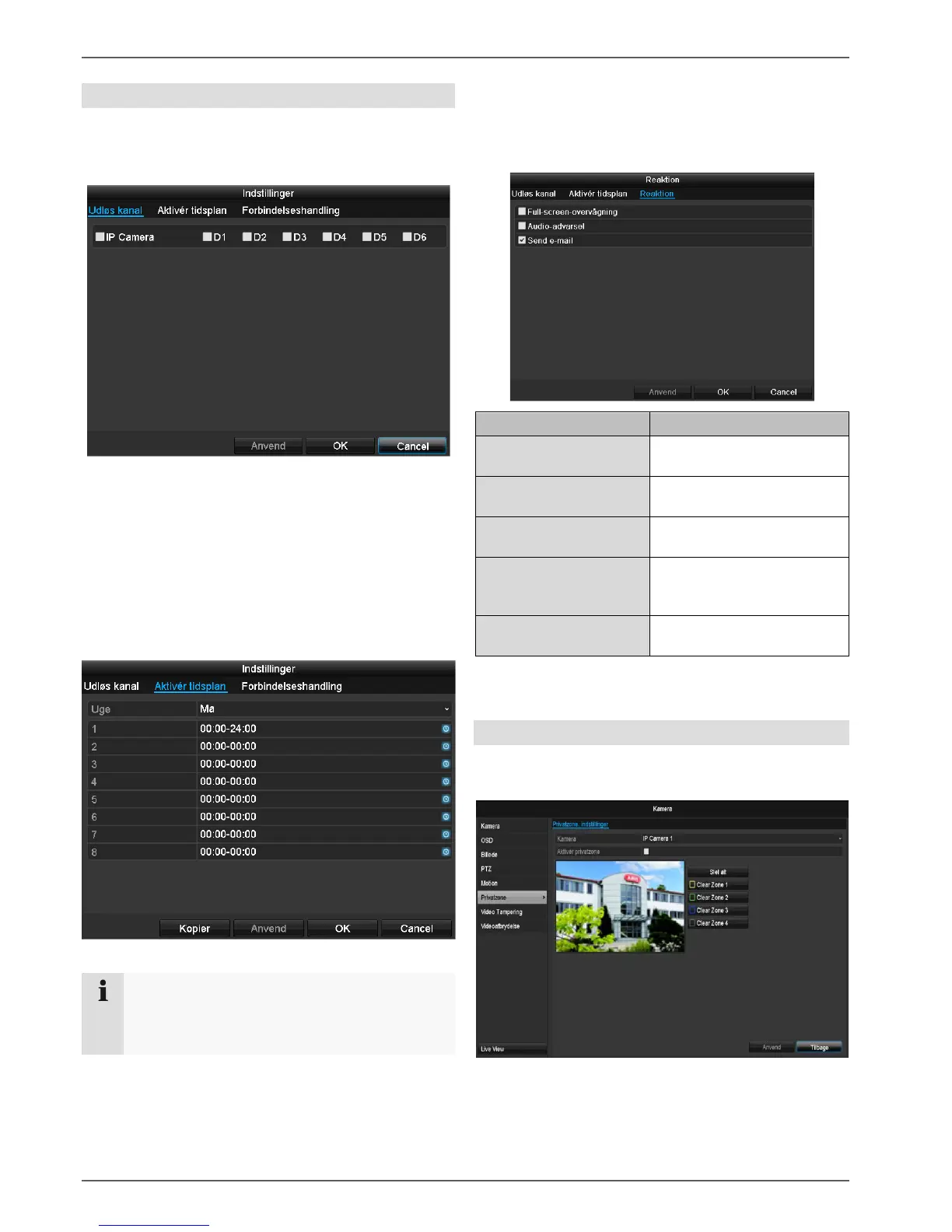 Her kan du konfigurere optagerens reaktion ved en alarm
