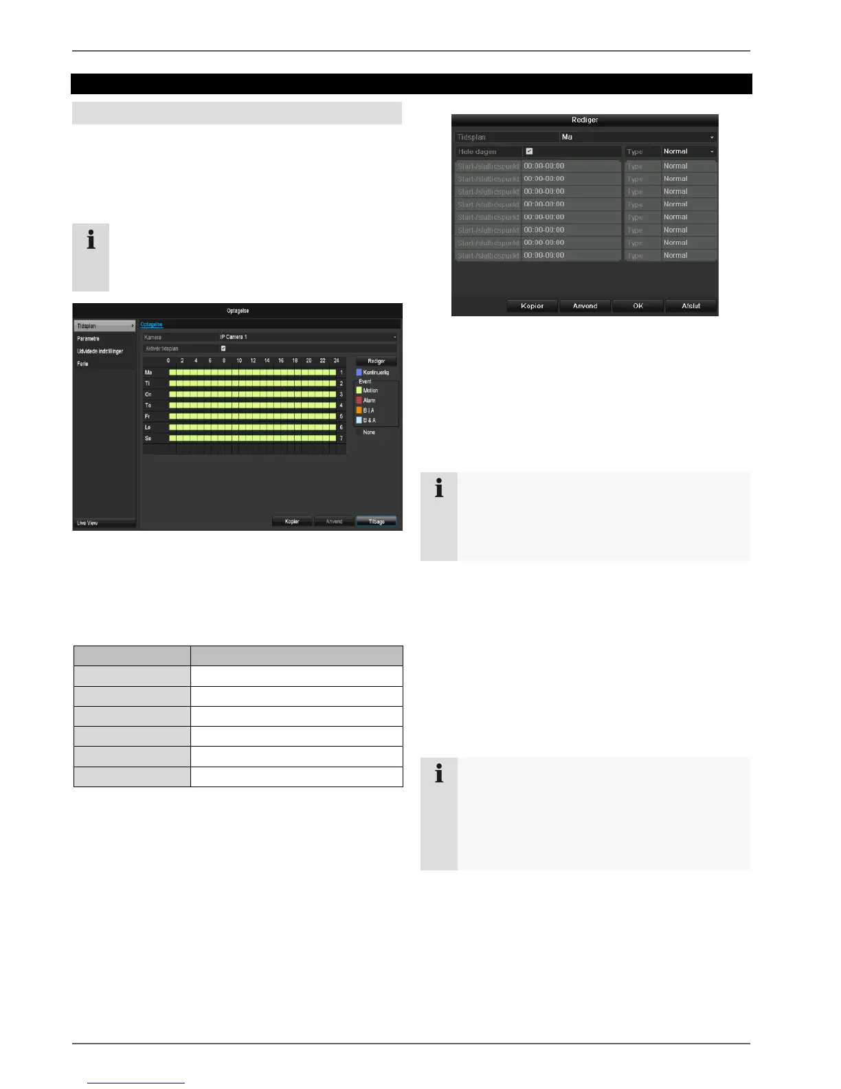 Ved hjælp af tidsplanen indstilles optagelsestiderne eller