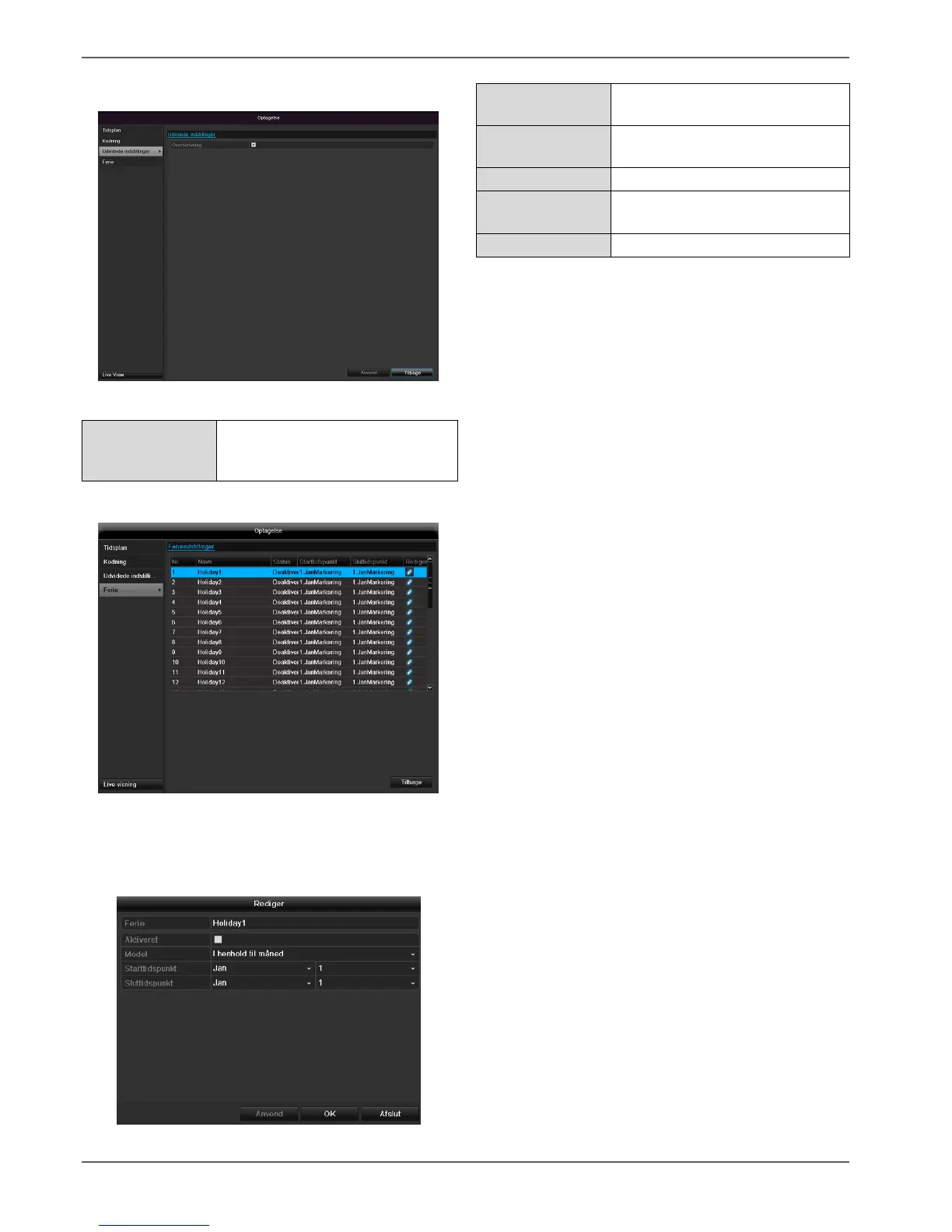 Abus TVVR36000 - Udvidede Indstillinger; Ferie