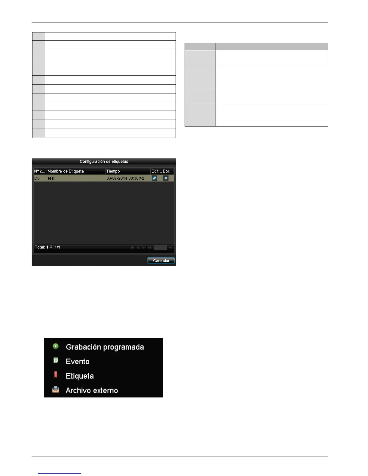 presentar y filtrar diferentes tipos de grabaciones y even-