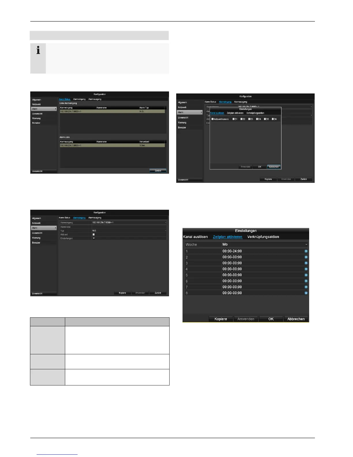 den Alarmeingang anhand der Netzwer-