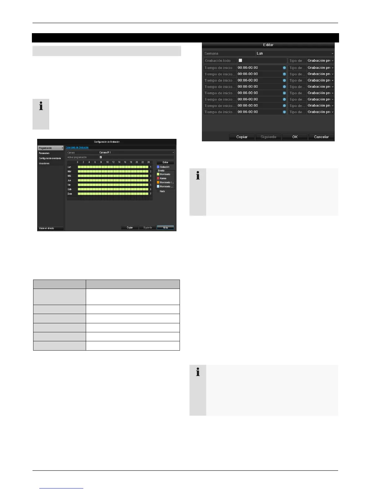 Con el horario se configuran los tiempos de grabación o