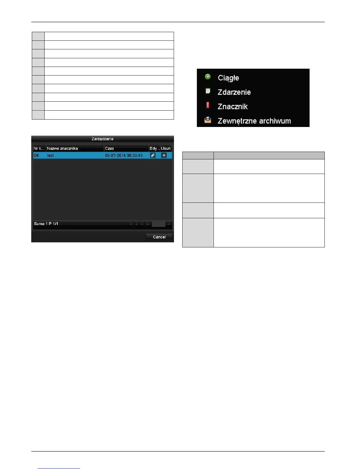 Odtwarzanie zapisanych danych wideo.