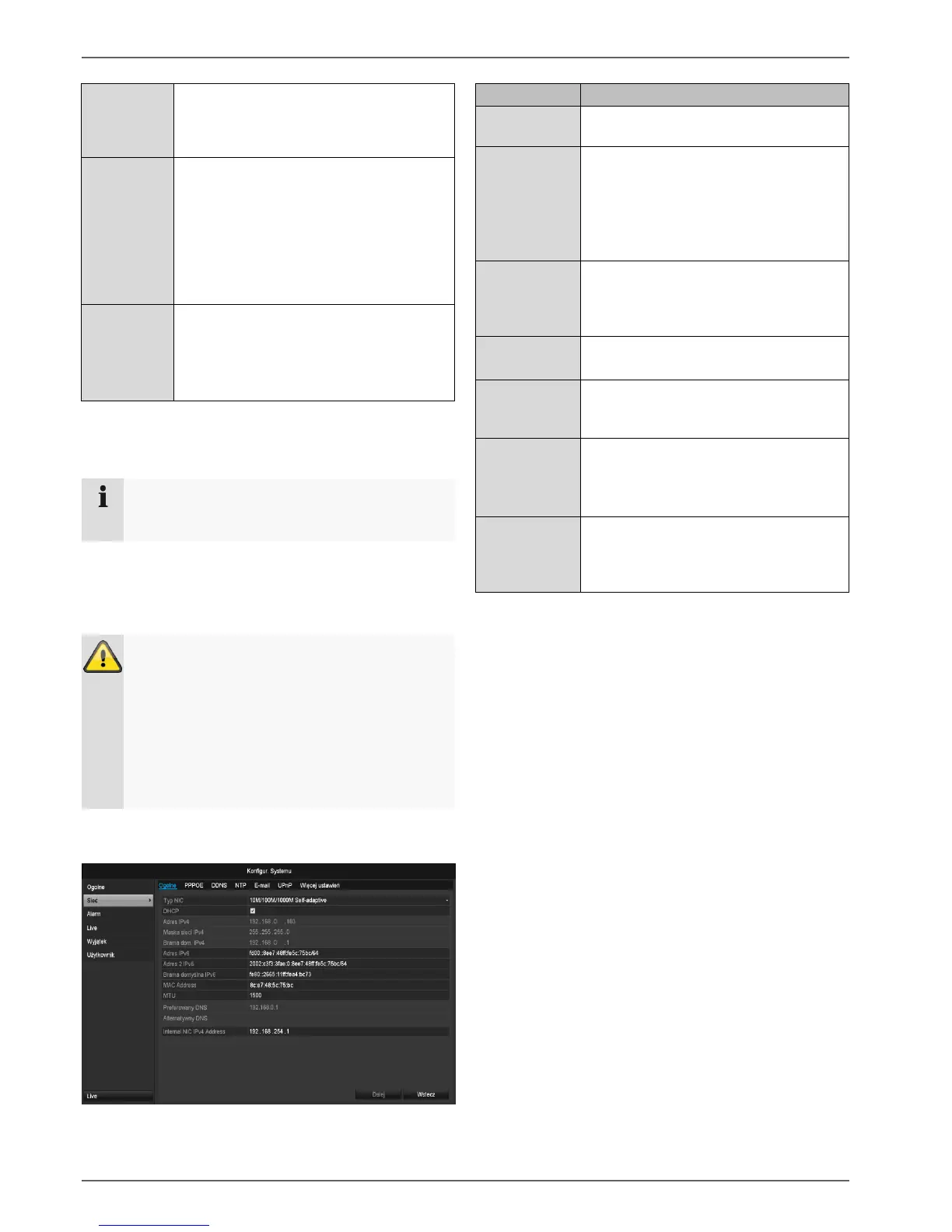 W razie zastosowania rutera sieciowe urządzenia