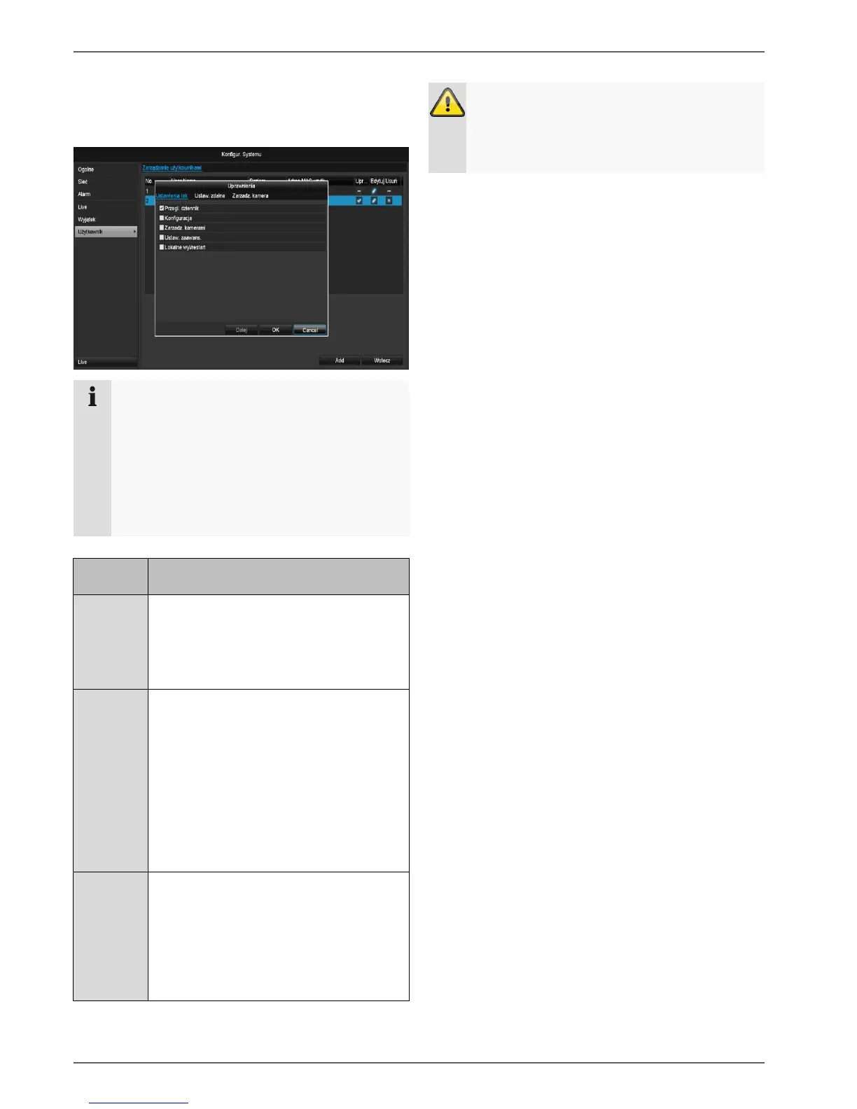 dostępu do poszczególnych kamer (z sieci lub lo-