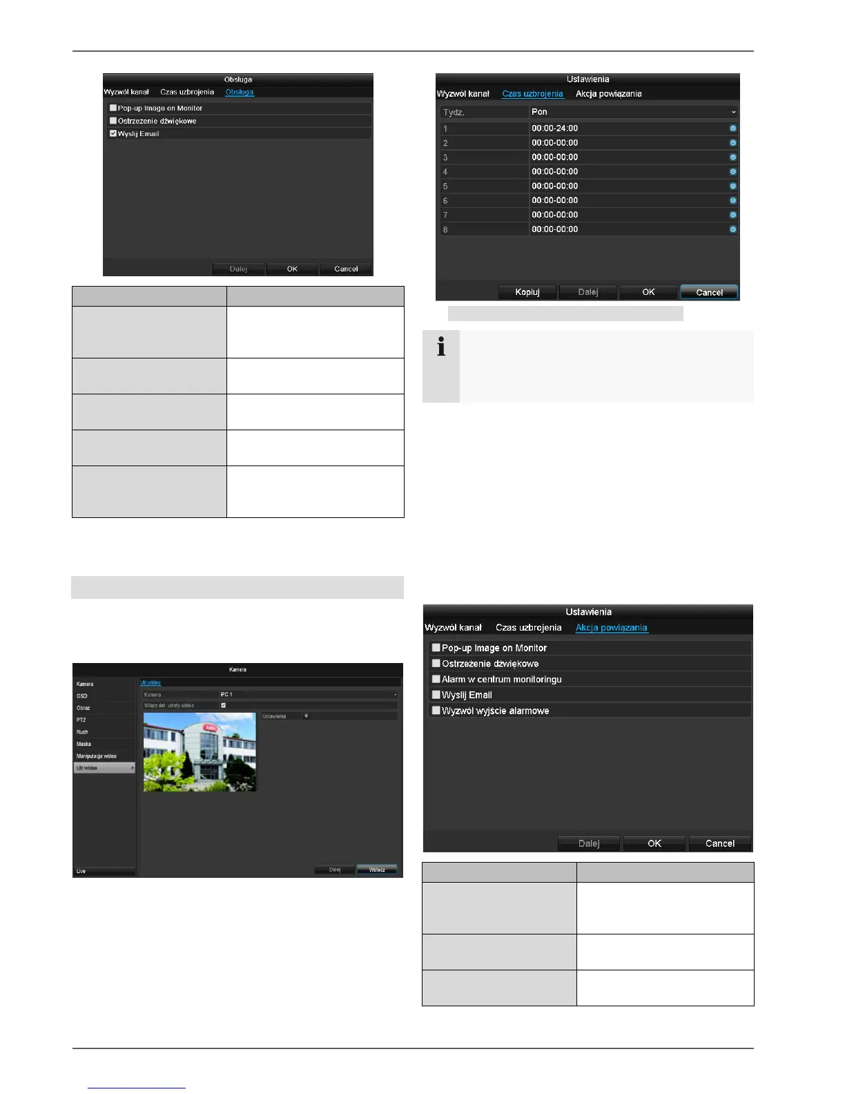 Tu można skonfigurować działanie nagrywarki w razie