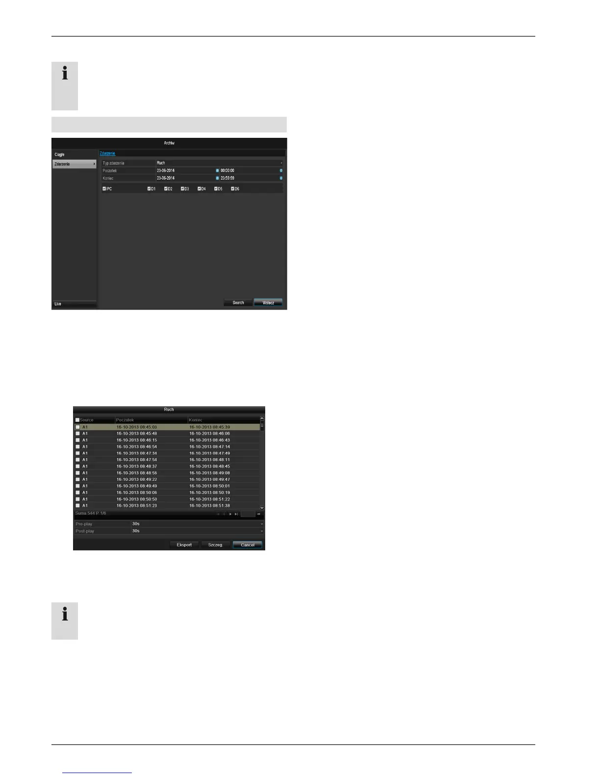 W obu typach zdarzeń po wciśnięciu przycisku Szukaj