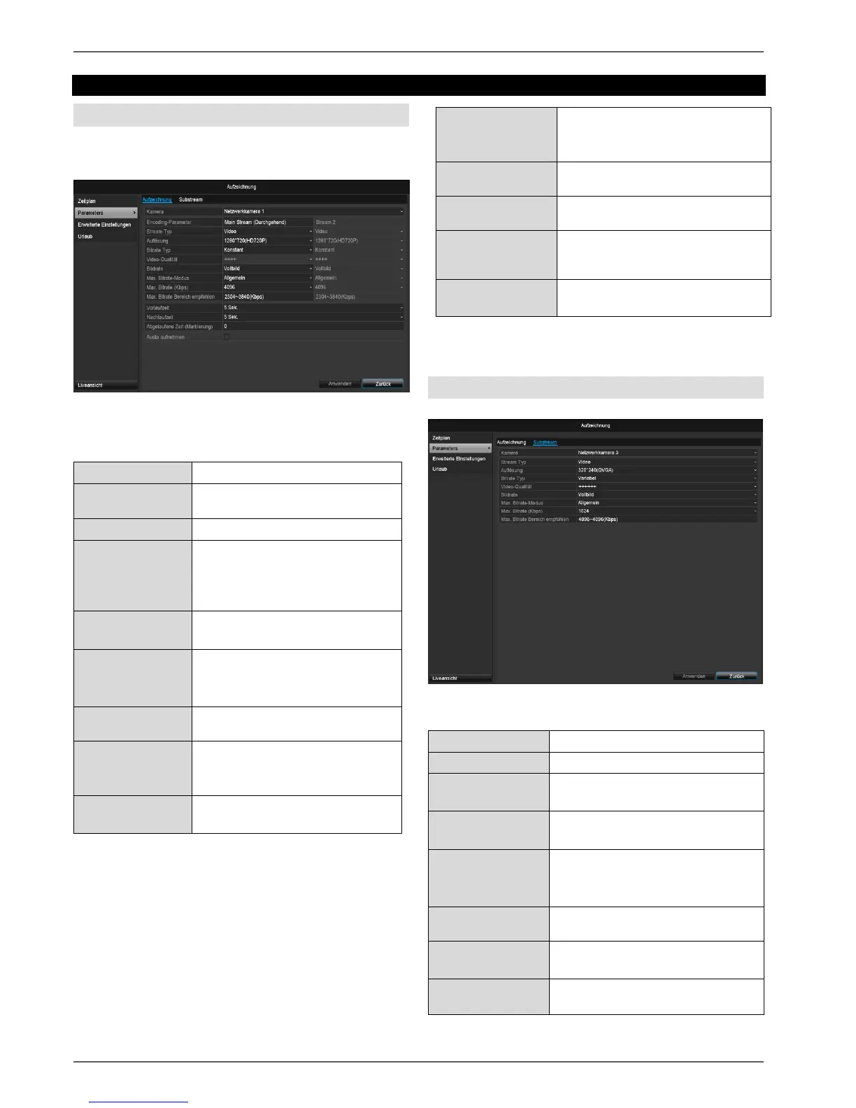 bzw. „Auslöser“ (Aufzeichnungstyp) für die Kameras ein-
