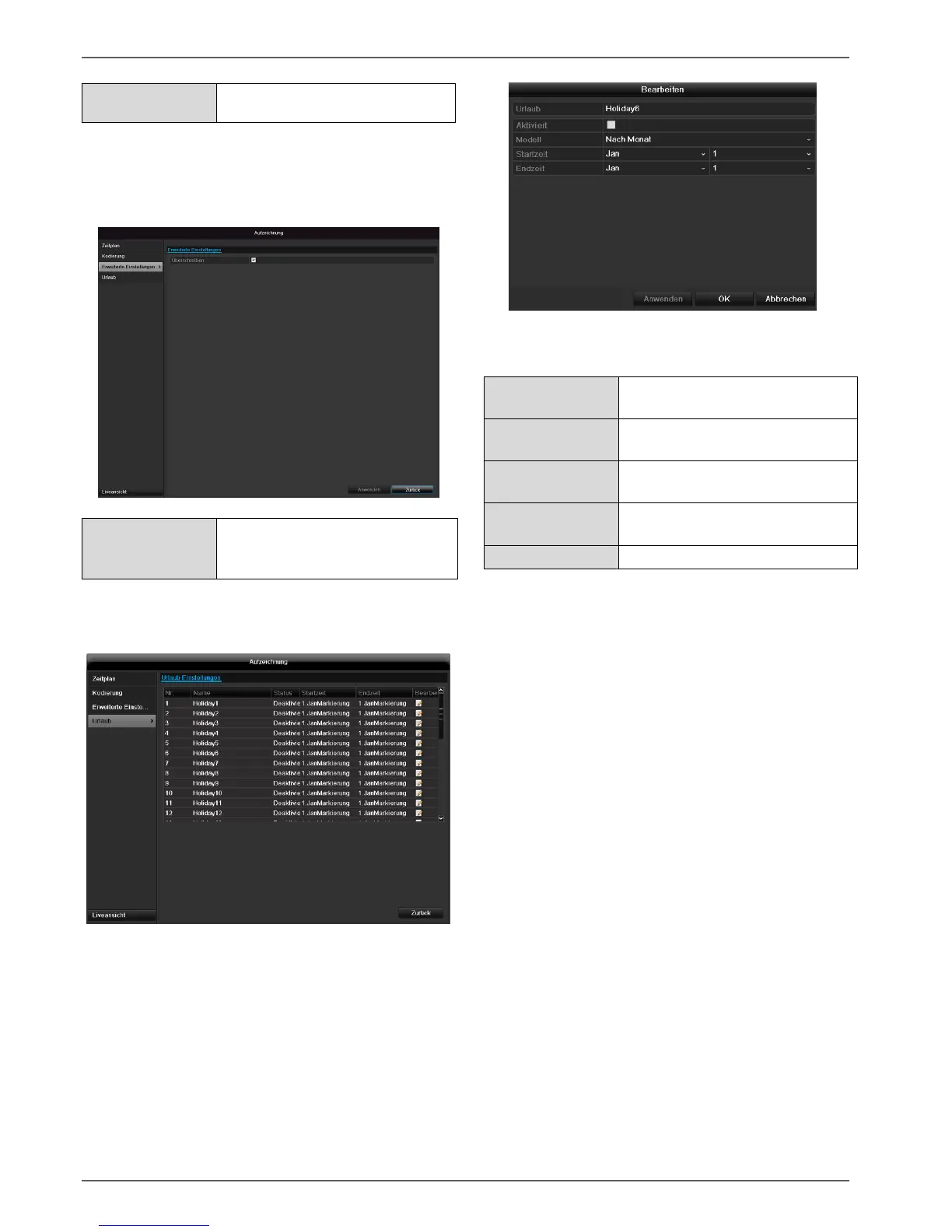 nungseinstellungen für Urlaub oder Feiertage getroffen