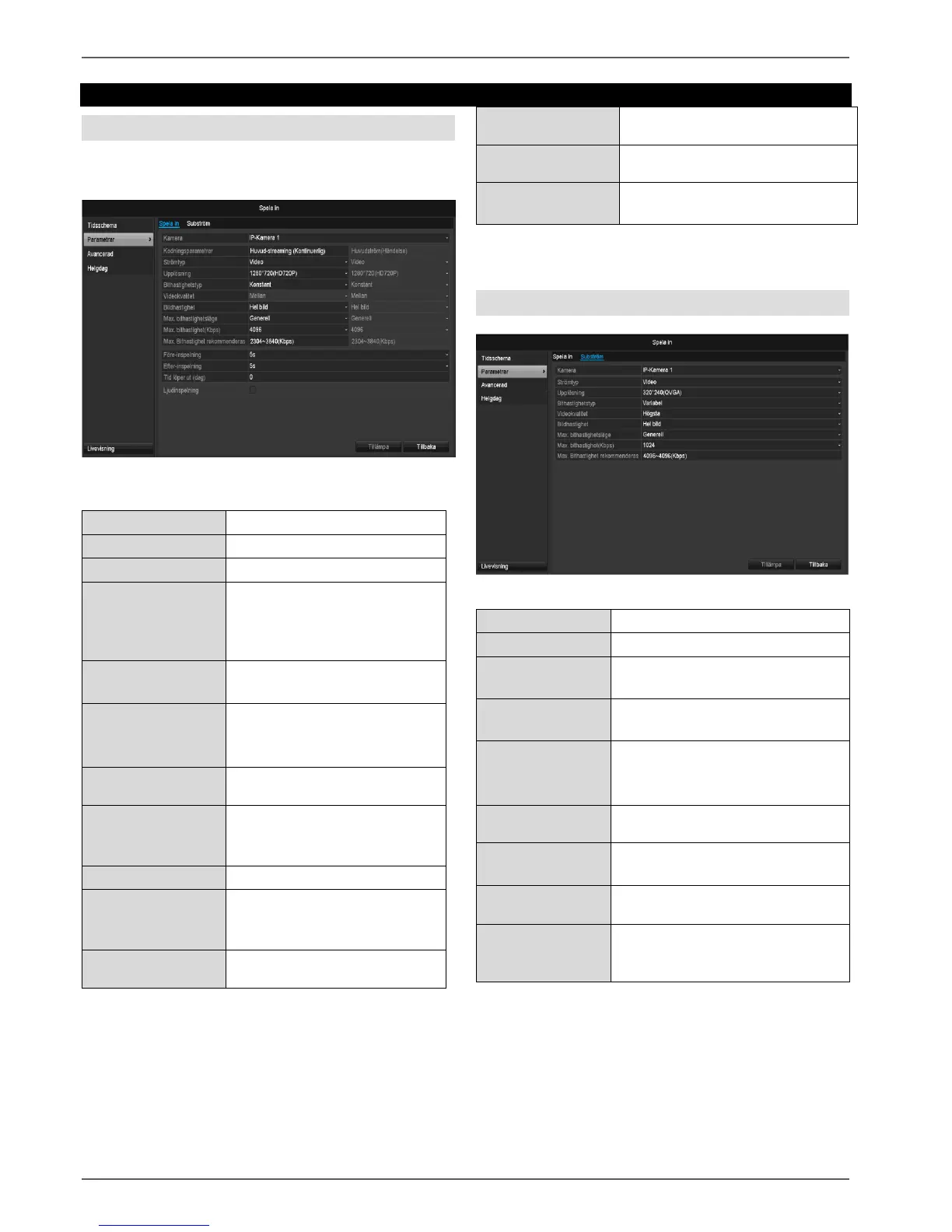 och ”utlösarna” (inspelningstyp) för kamerorna.