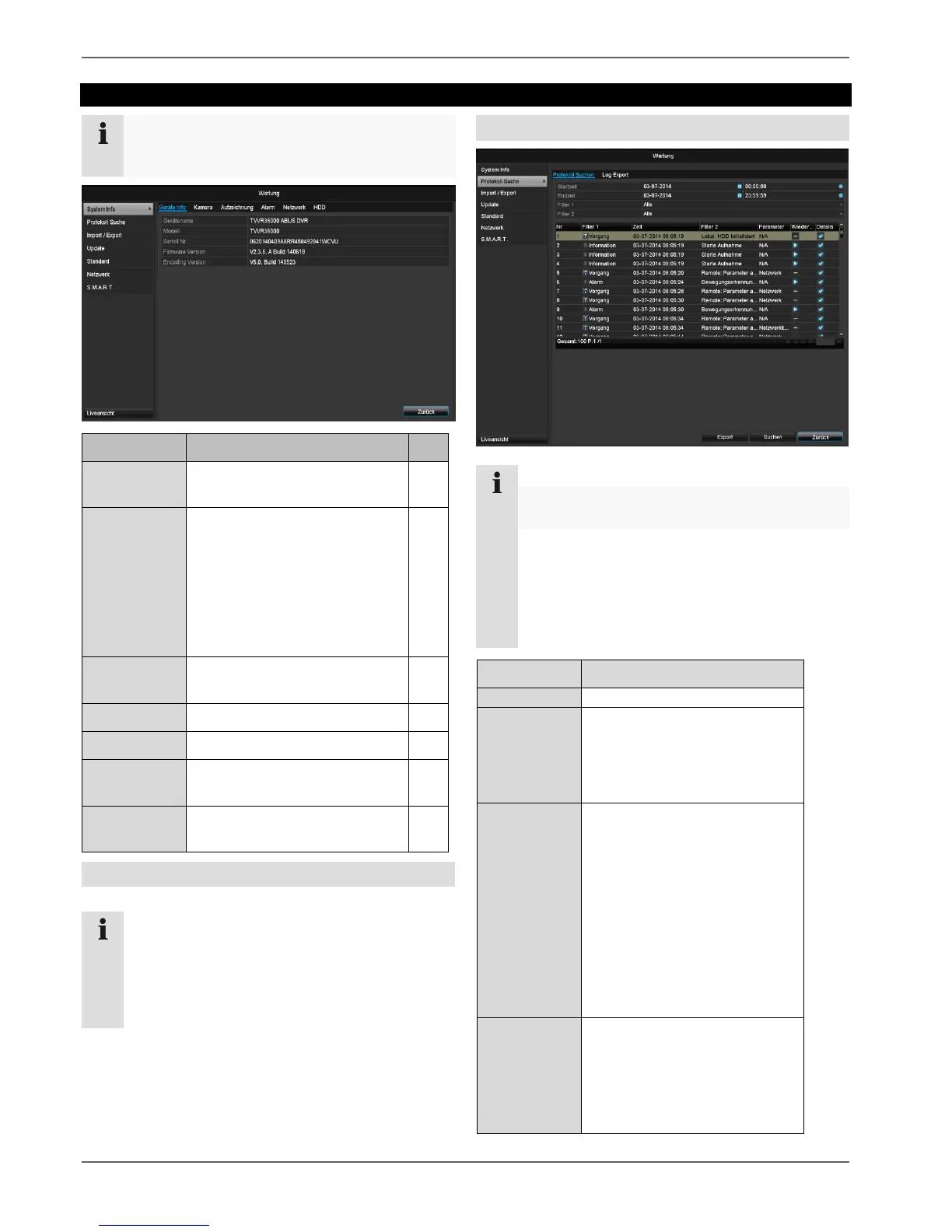 schiedenen Einstellungen der Kameras, Aufzeich-