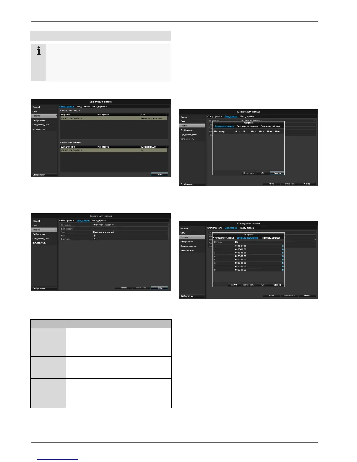 настроить поведение регистратора в случае тревоги.