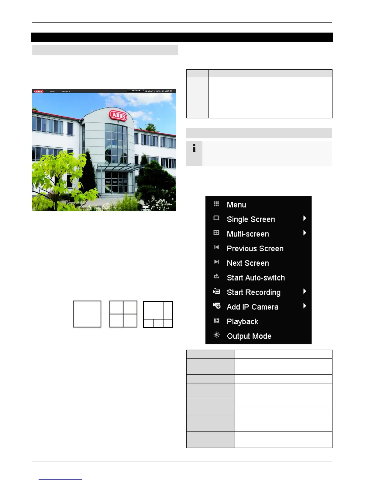 The signals of the connected cameras are displayed on