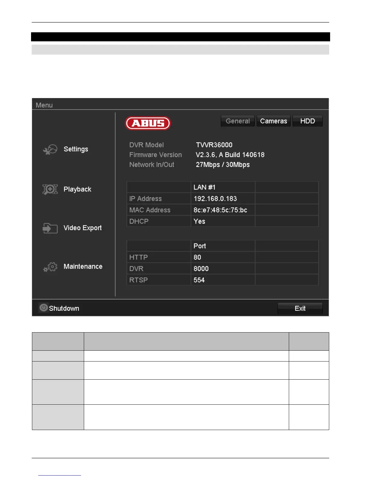 Includes the menus Configuration, Camera, Record, HDD, Playback.
